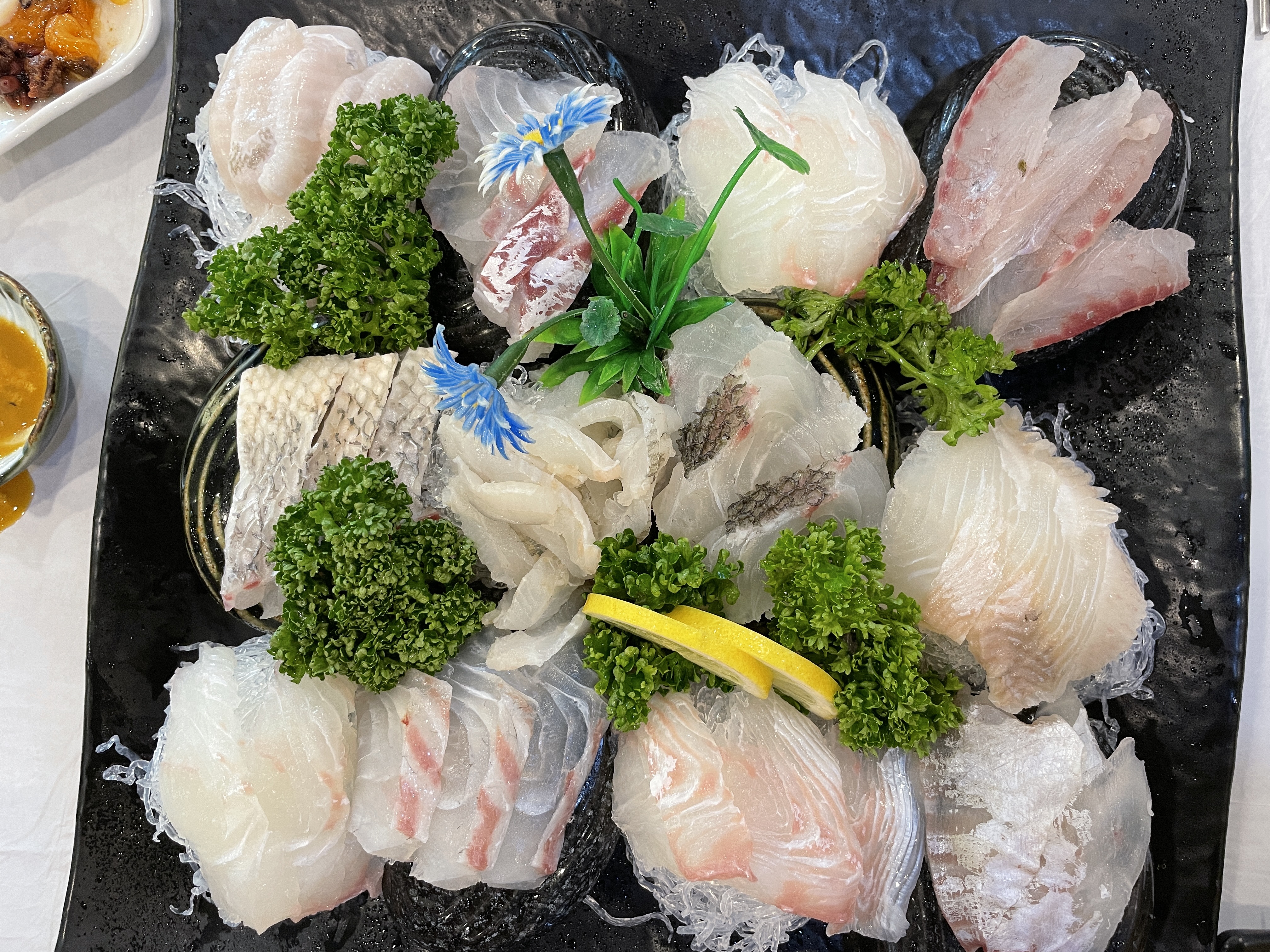 한켠에 나온 자리돔회는 뼈가 조금 억세서 치아가 호불호가 갈리겠지만 저는 맛나게 잘 먹었어요. 작은놈이 참 고소하고 살이 단단합니다.