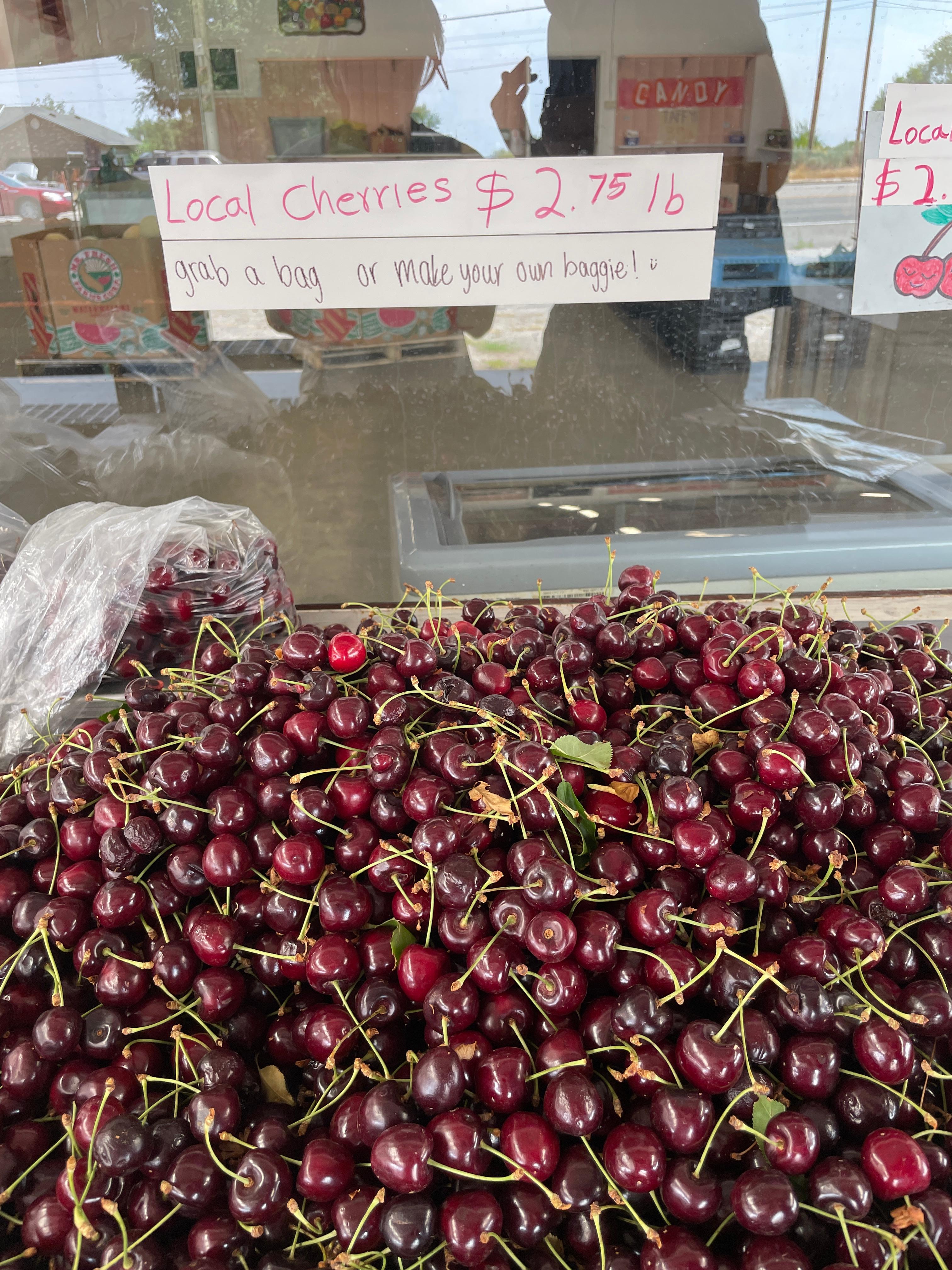 체리가 더 싱싱한데 가격도 더 좋았어요. 그래서 마구 담기 시작했어요.