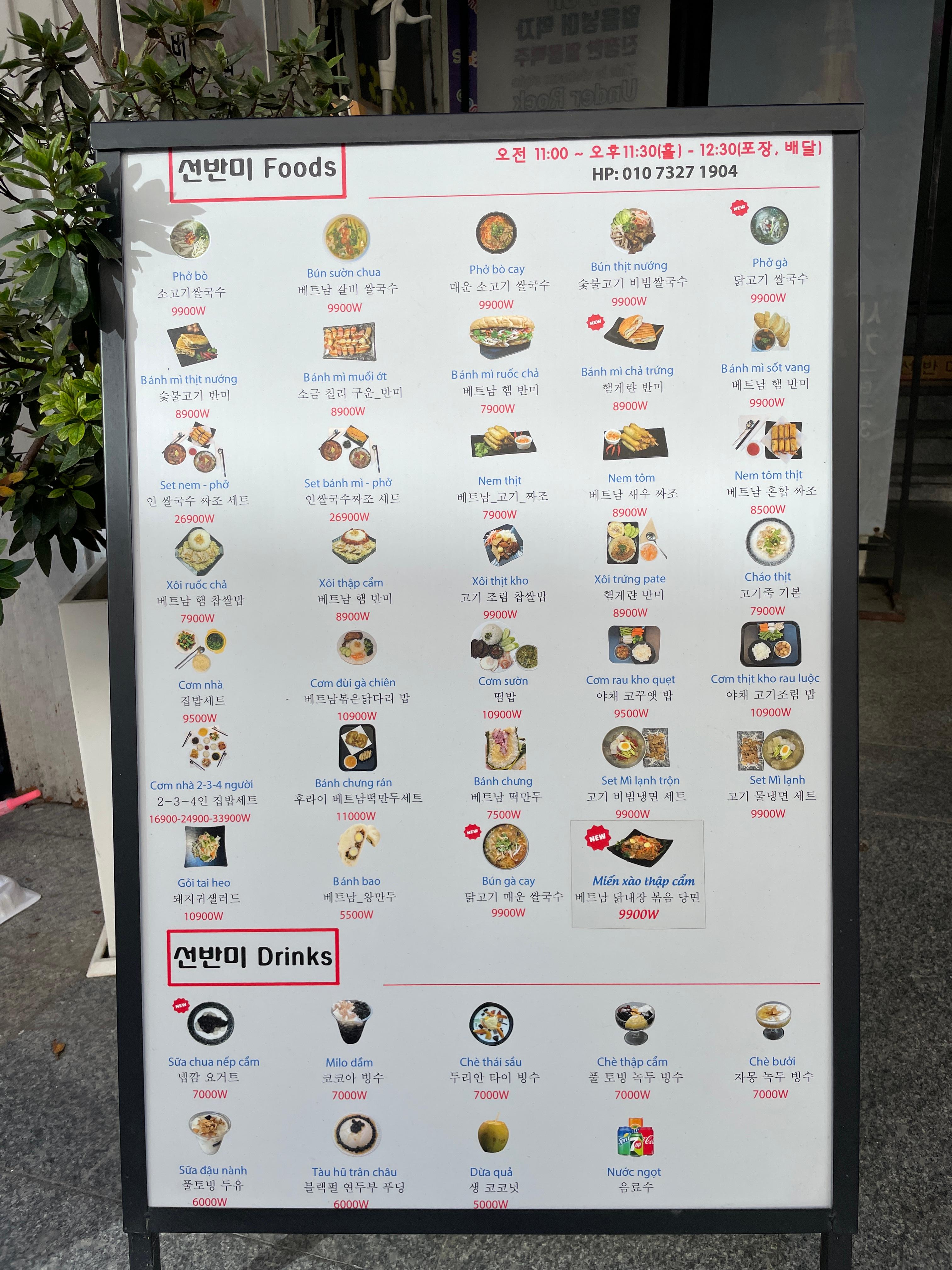 - 반미(베트남 샌드위치): 8,900-9,900원