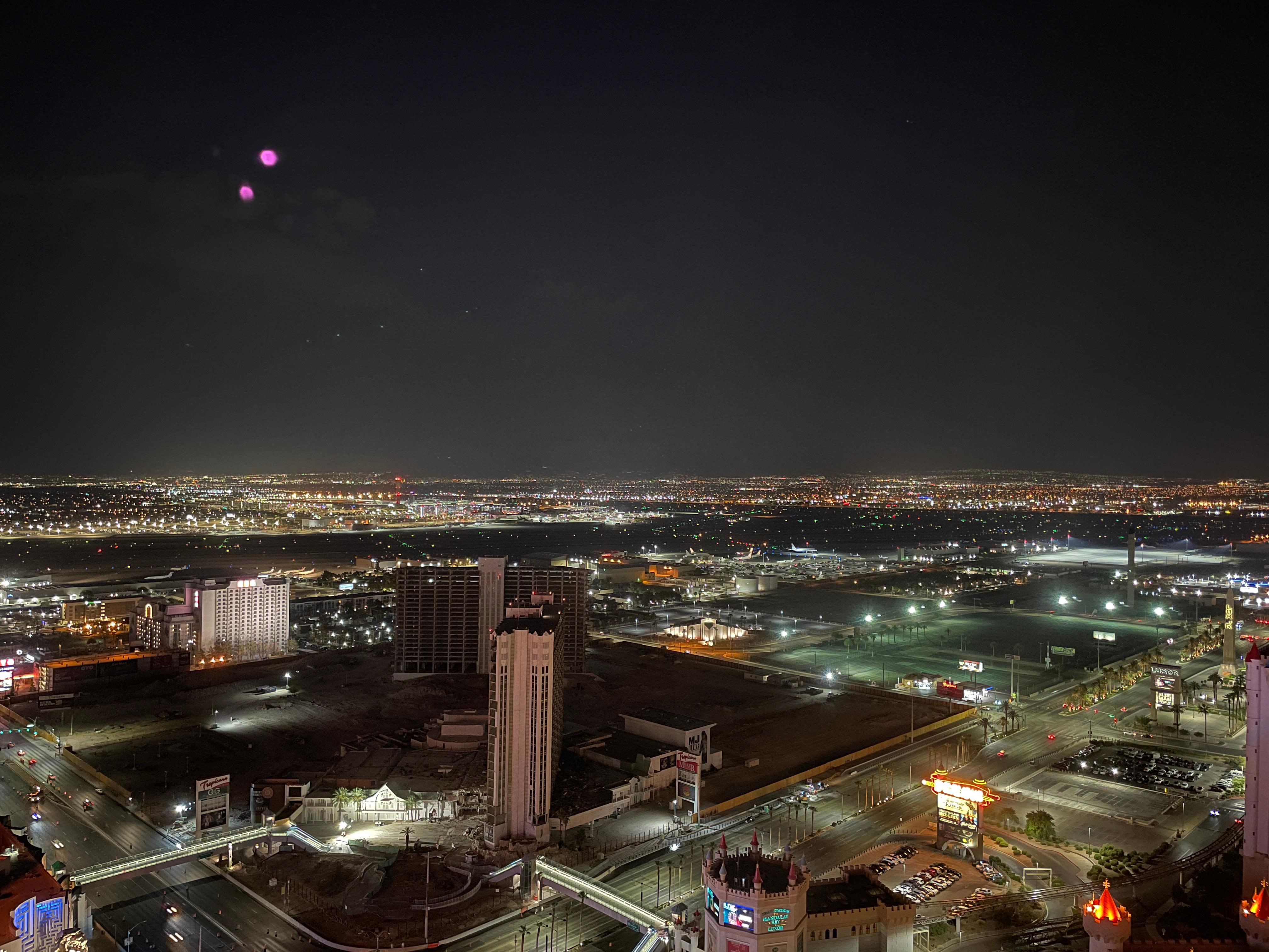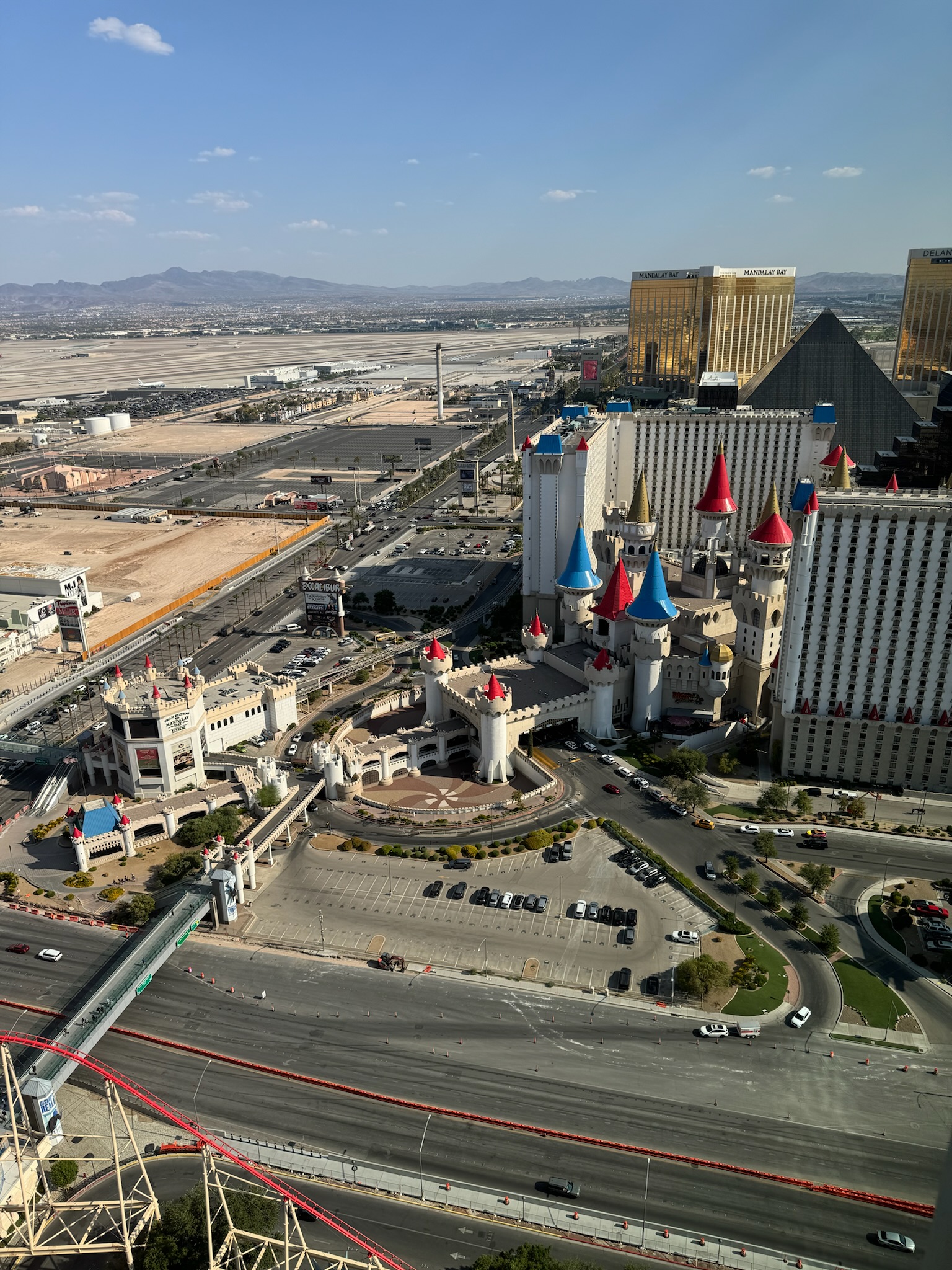 다른 호텔이 어찌나 훤하게 보이던지. 금방 만다린베이 호텔이 보이는데 2017년 총기사건 난 곳이에요. 피라미드 건물도 보이네요. 라스베가스오면 세계 유명 건축물을 많이 볼 수 있어요.