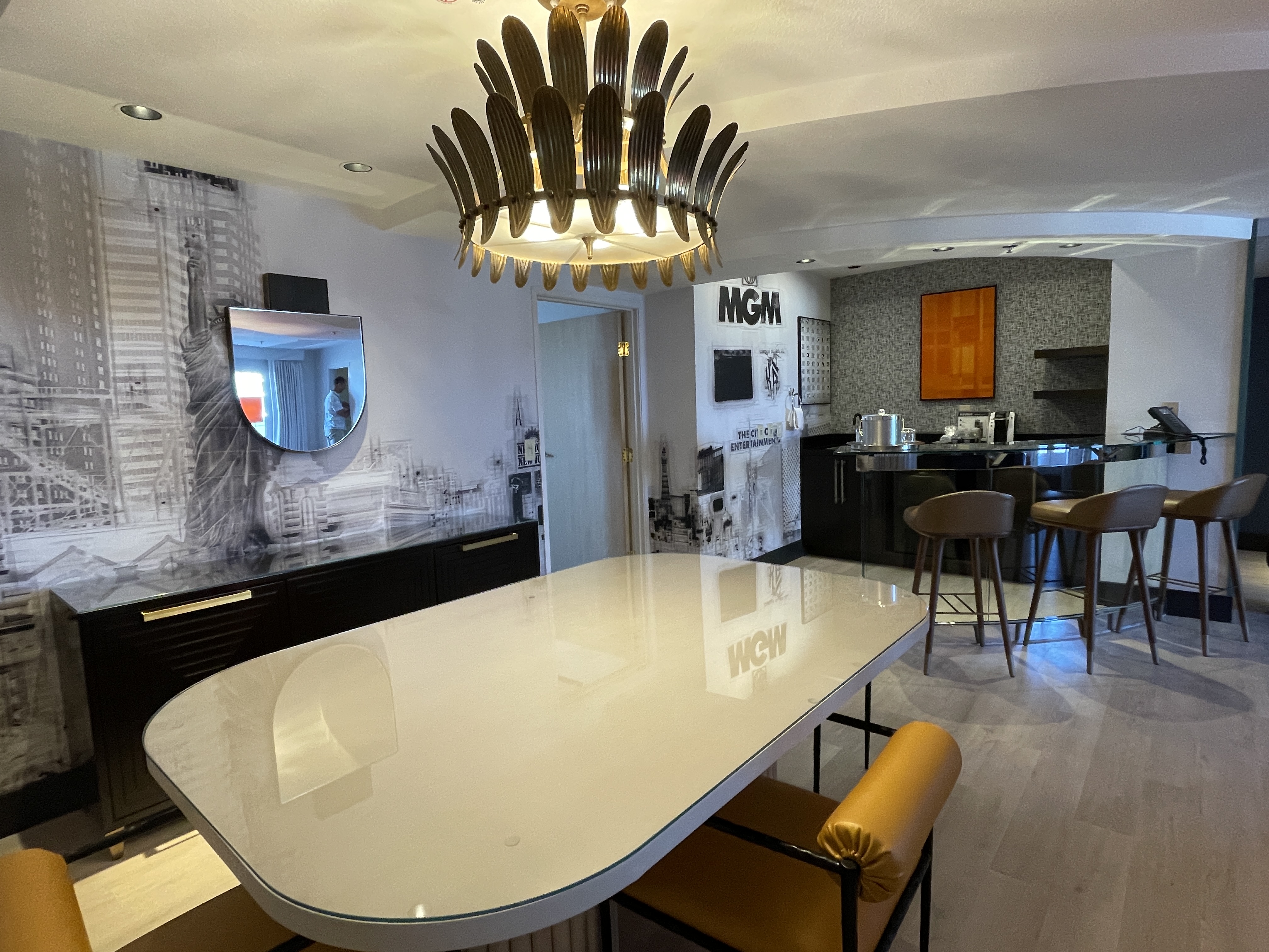 뉴욕뉴욕도 메리어트 체인에 들어가는데 이용실적으로 팬트하우스로 방배정을 해줬어요. 아까 밖에서 봤던 건물의 맨 높은 층이고요. 이 층에는 룸이 2개만 있다 하더라고요.