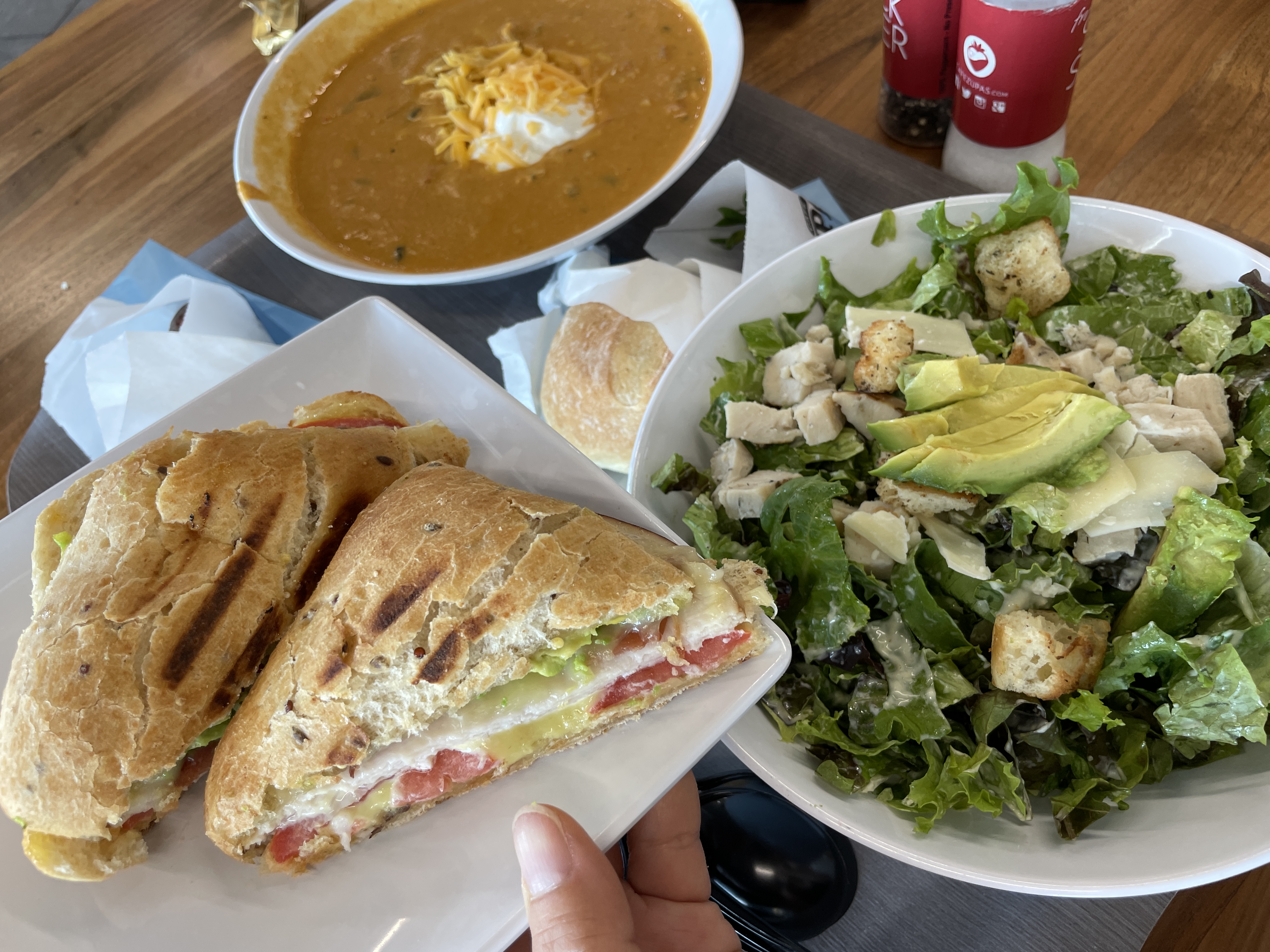 샌드위치는 터키를 골랐던것 같고 수프는 엔칠라다 뭐 그런걸 골랐어요. 샐러드는 아보카도 시저.