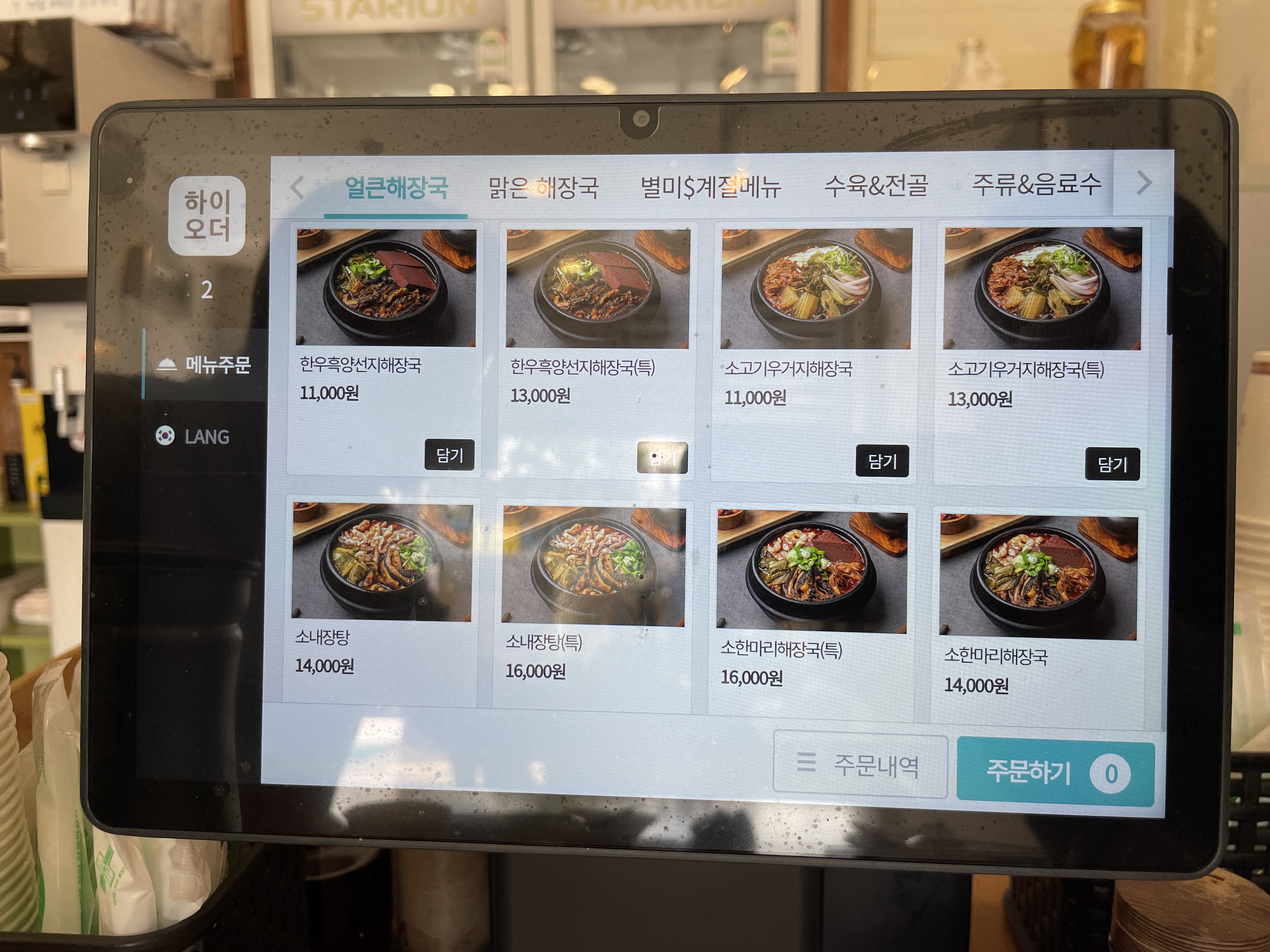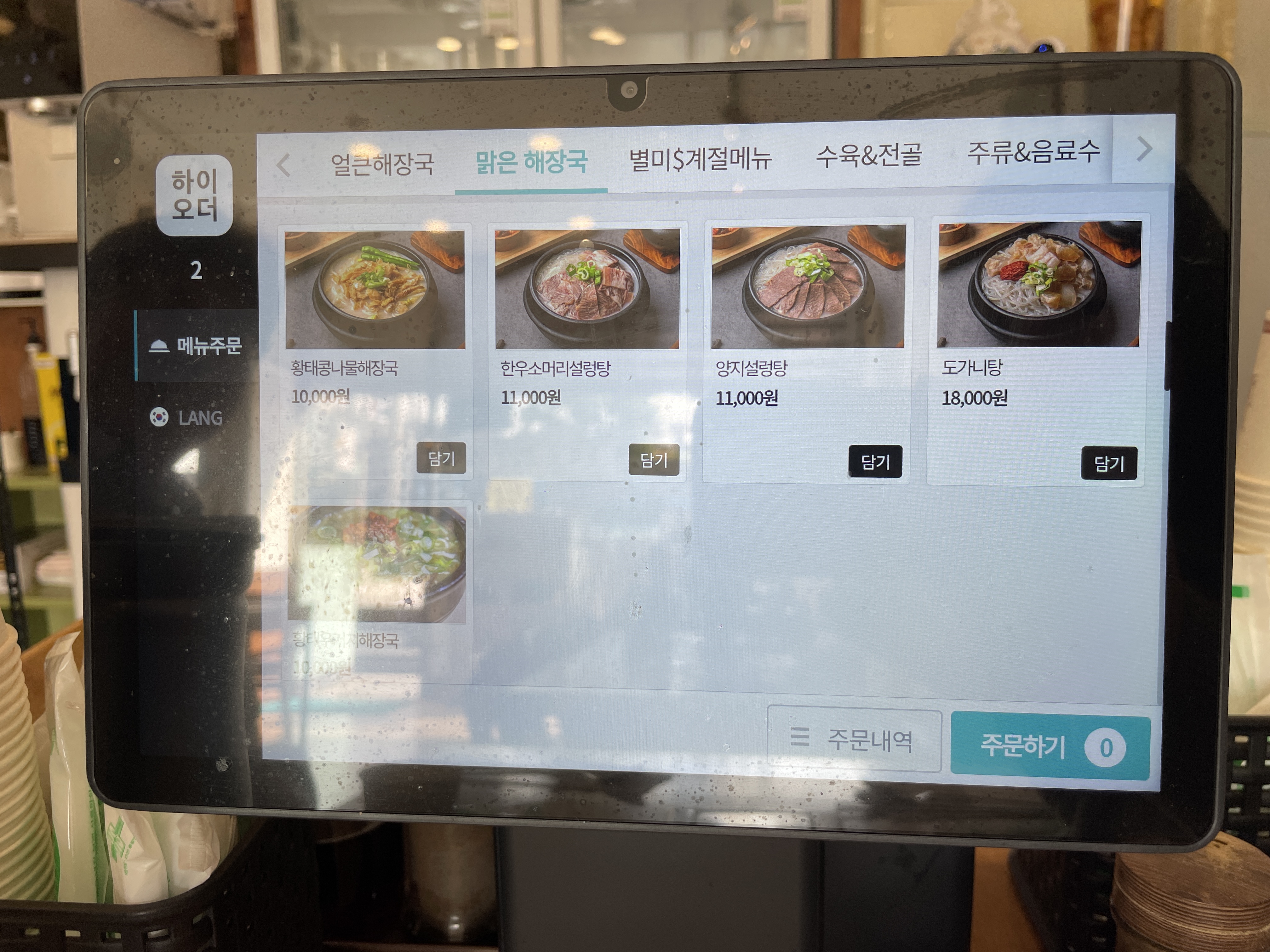 주문은 테이블마다 있는 패드로 가능합니다. 소내장탕을 주문했어요.