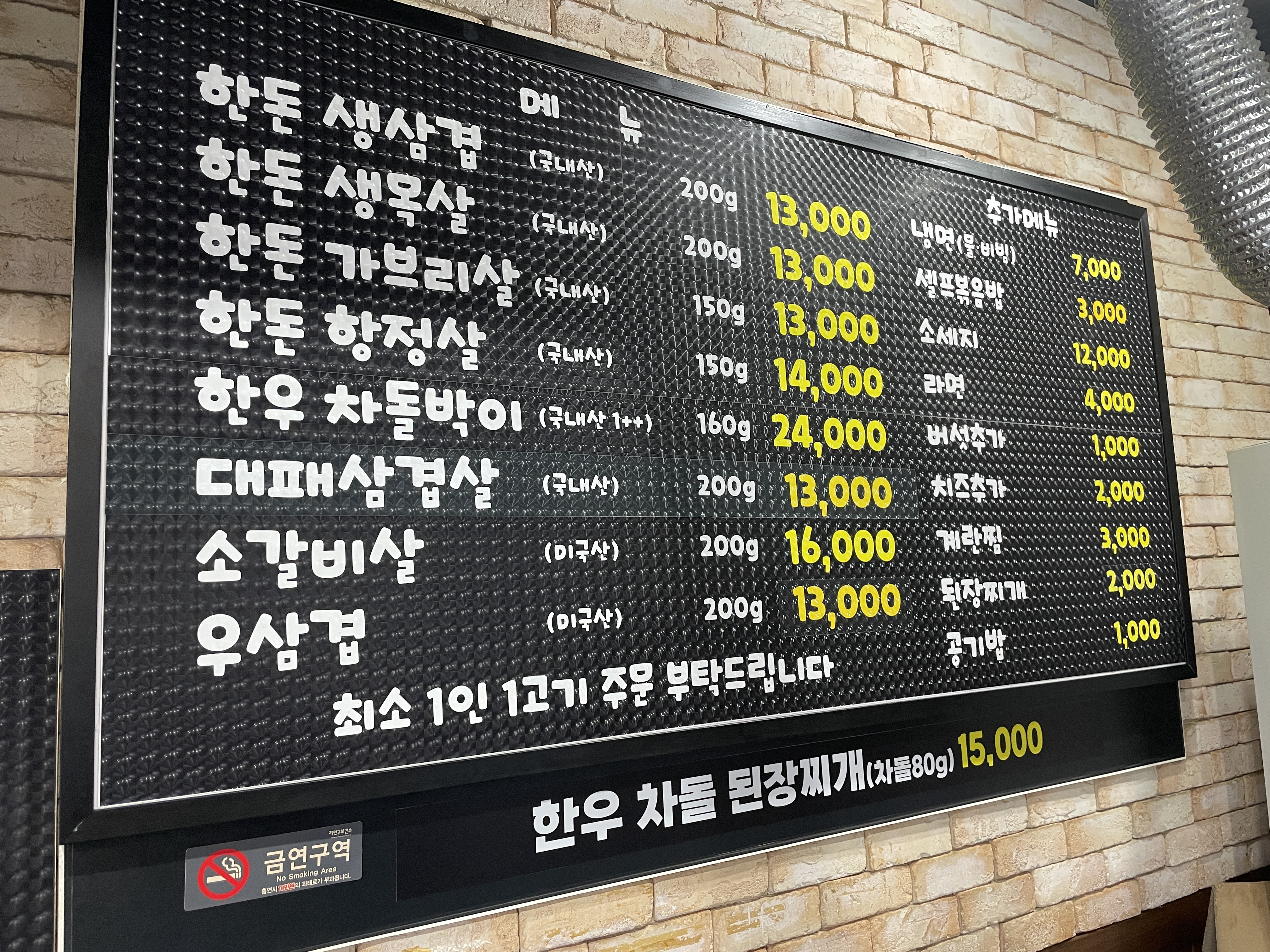 가격 너무 좋습니다. 한우차돌된장찌개15000원이 눈에 띄는데 차돌박이가 80g이나 들어간다니 괜찮을 것 같아요.