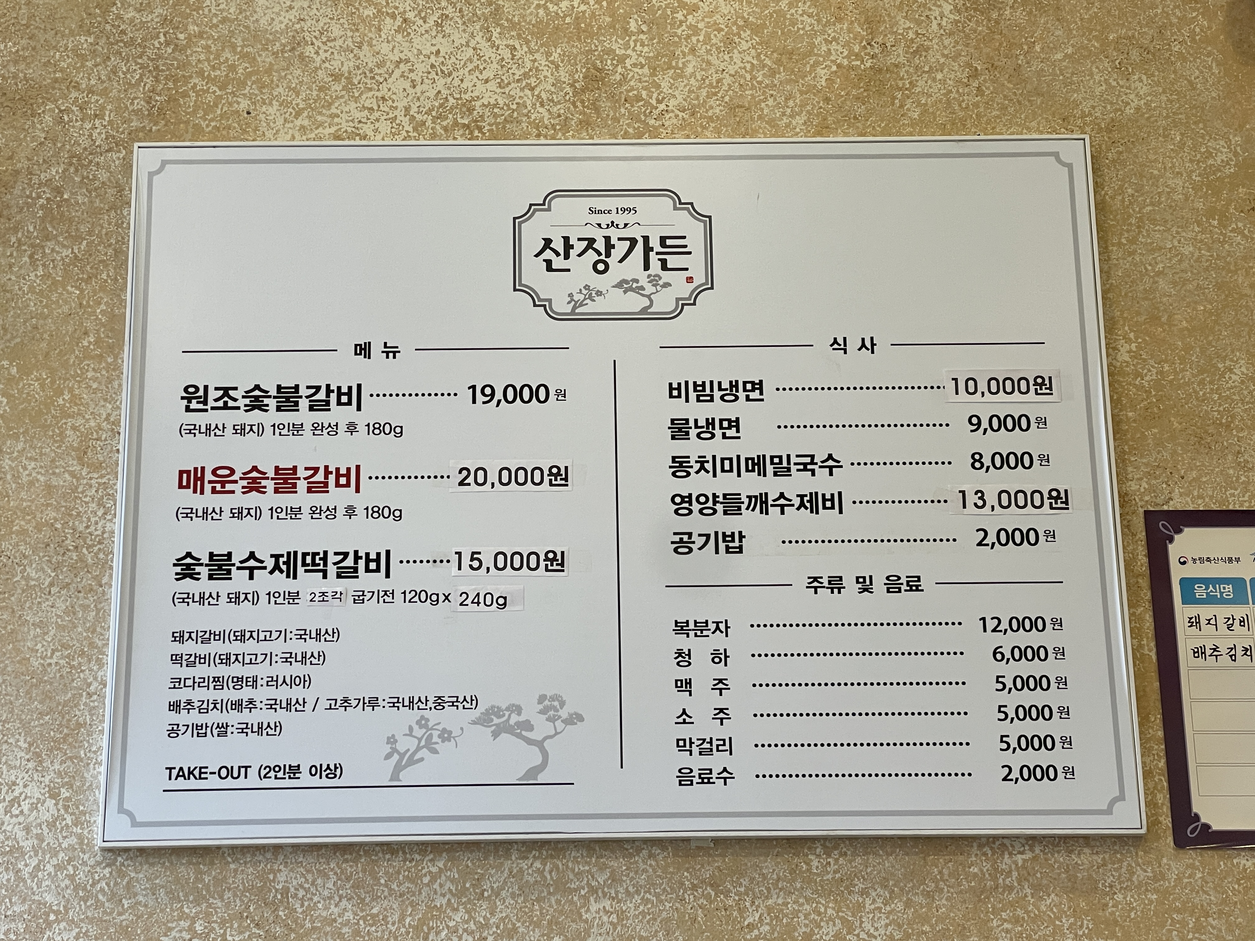 원조숯불갈비 19000원