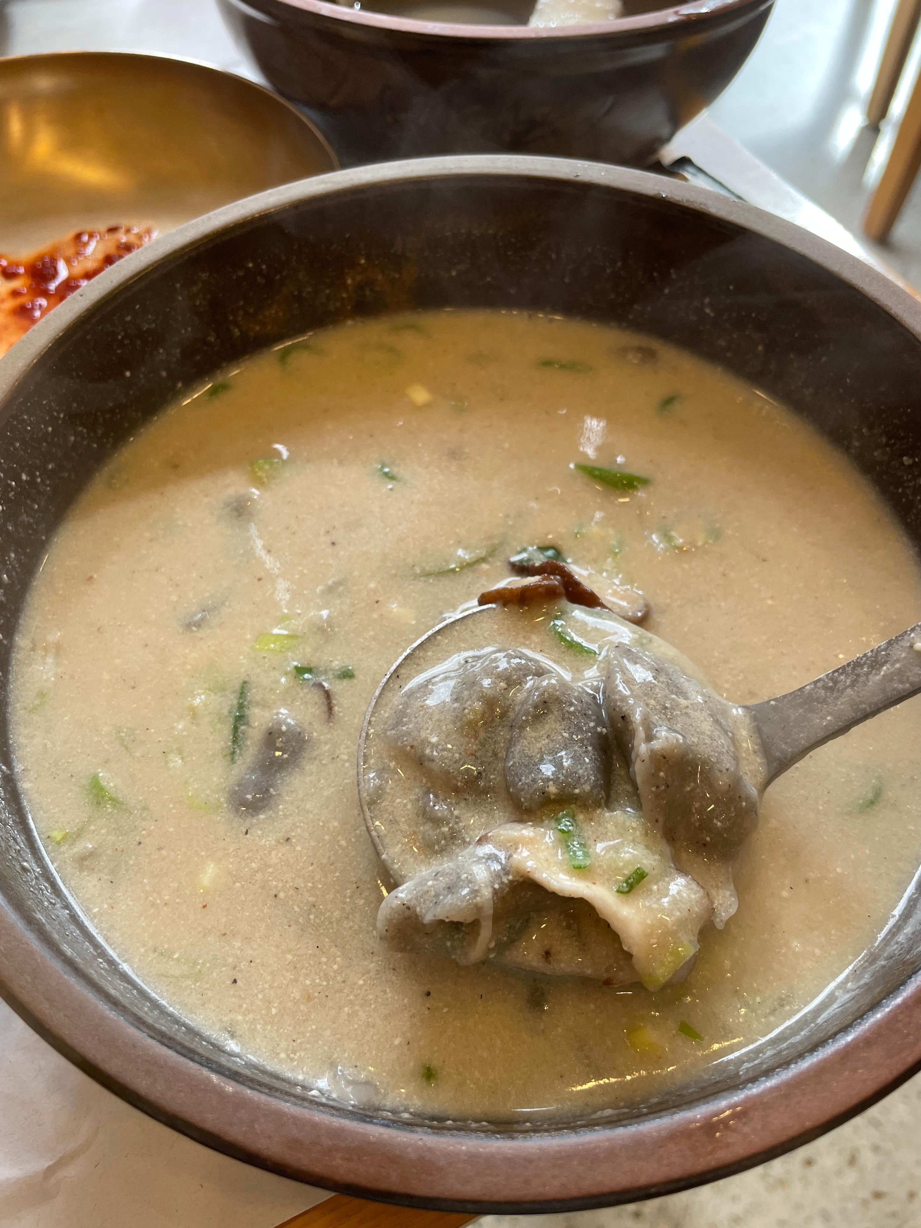 식사로 영양들깨수제비를 주문했어요. 양이 넉넉해서 둘이 나눠먹으니 딱 좋았습니다.