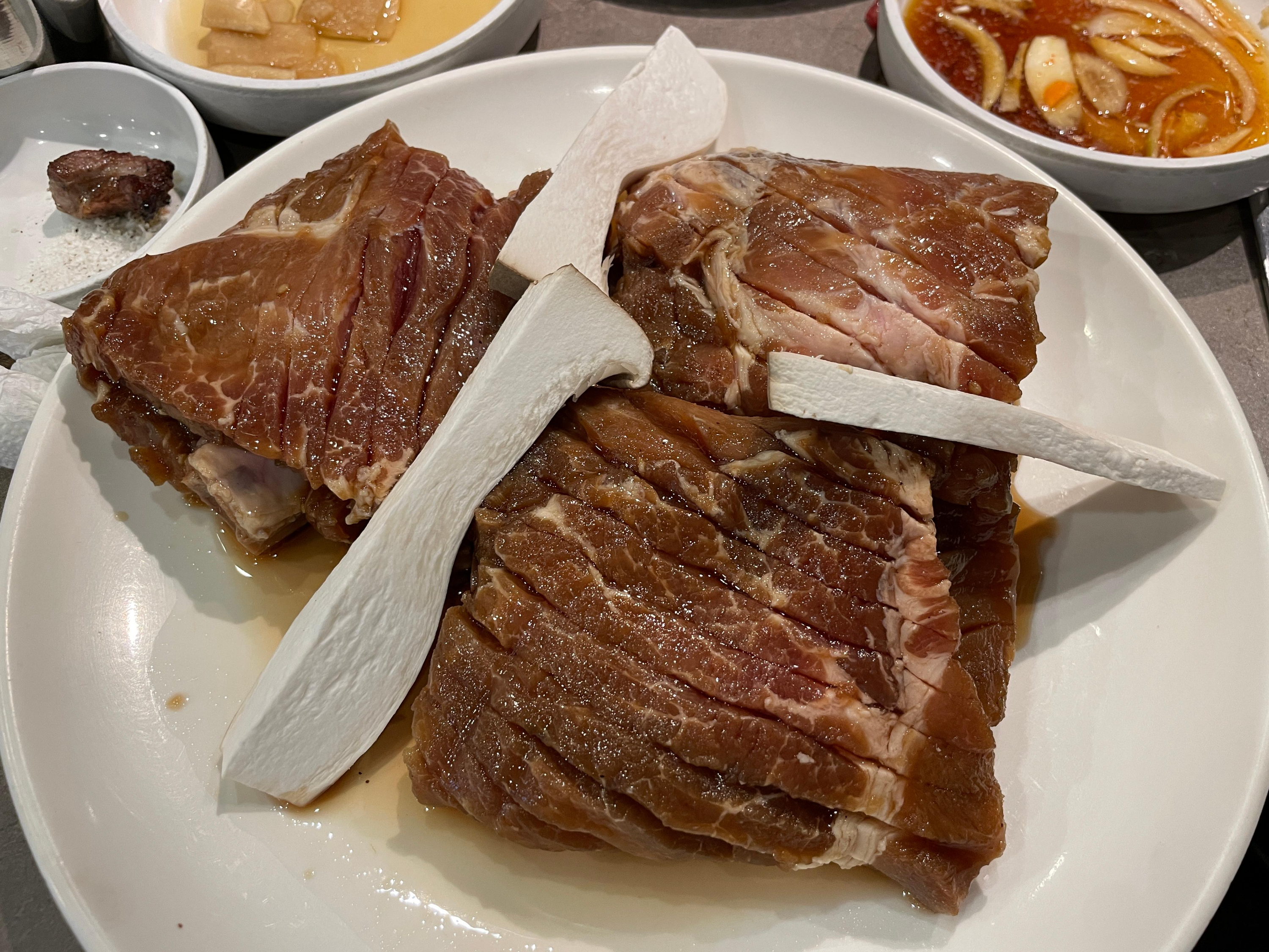 입가심으로 갈비를 결국 시켰습니다. 진짜 갈비살은 아닌것 같은데 양념맛도 좋았고 고기도 맛있었어요.