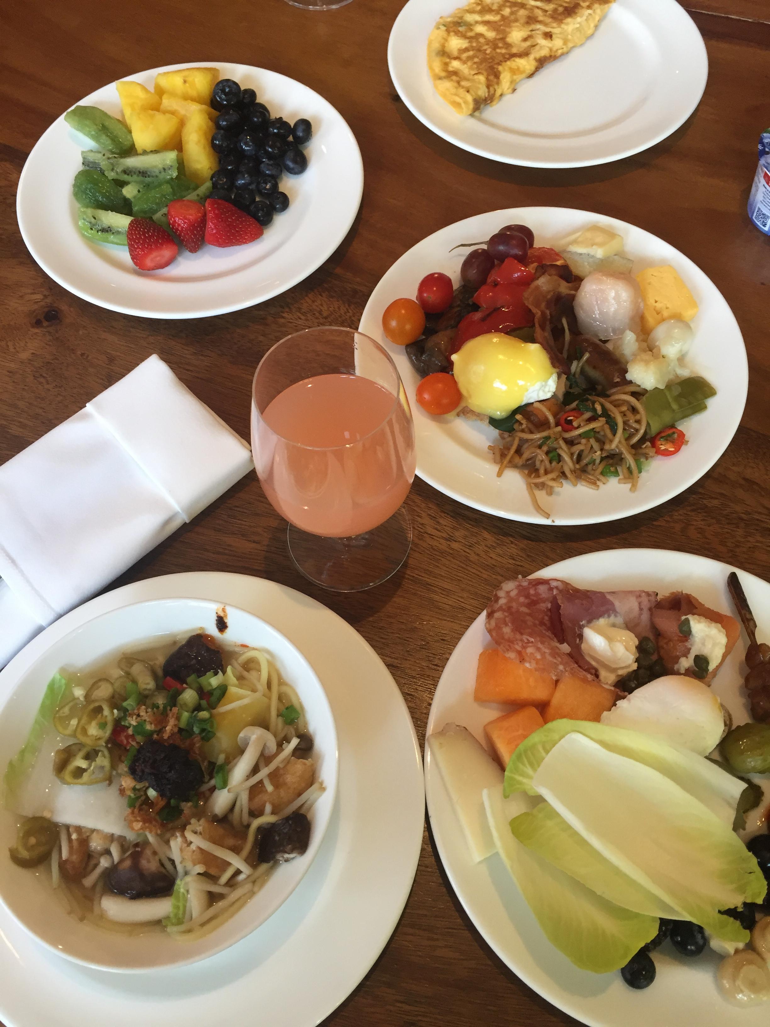 오믈렛 주문도 가능하고요. 각종 싱싱한 과일, 다양한 주스, 커피, TWG티 등도 준비되어 있답니다. 국수주문도 받아서 얼큰하게 한그릇 했습니다.