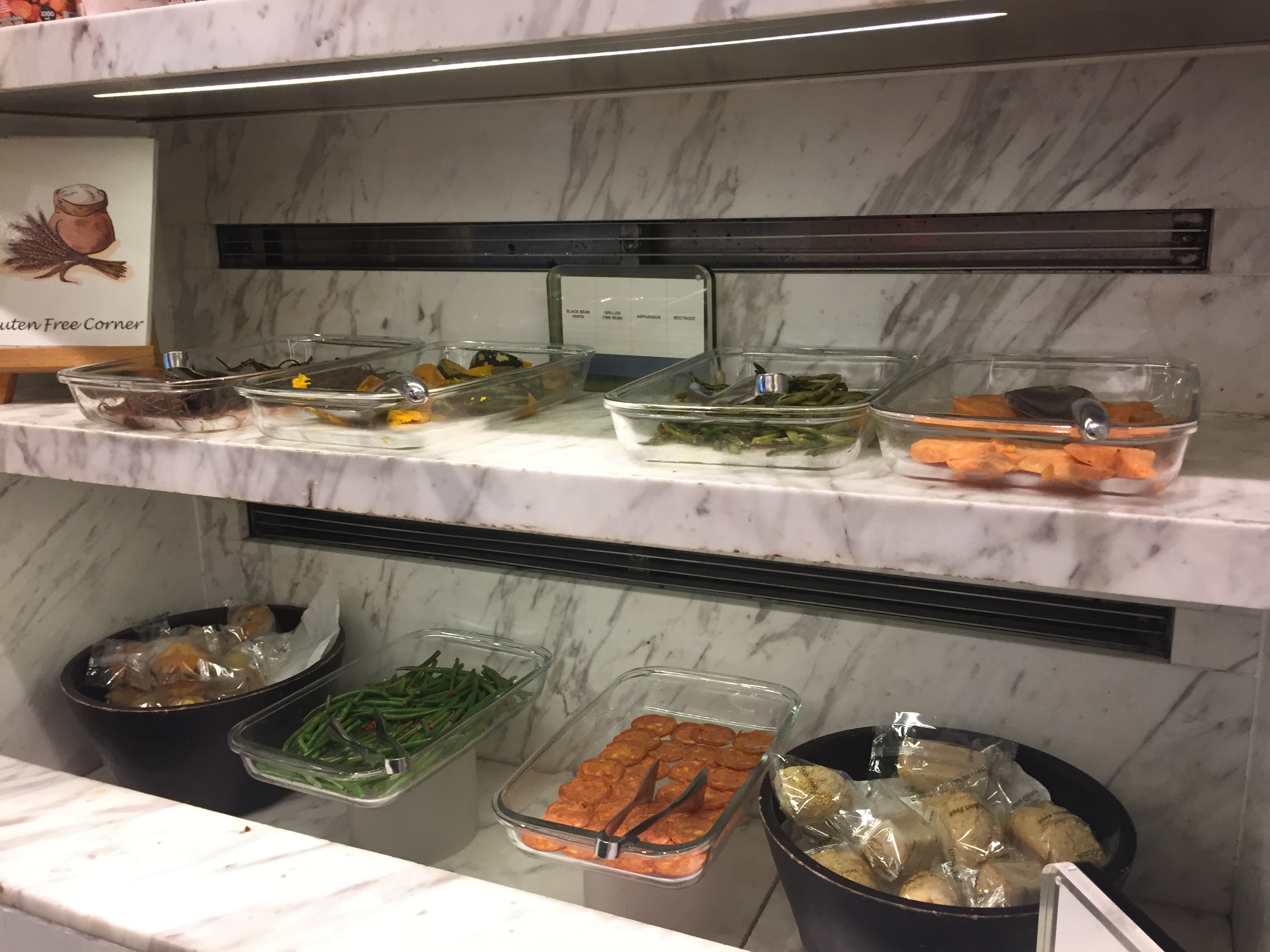 글루텐 프리코너라고 해서 채소요리와 글루텐 프리 햄등이 있었어요.