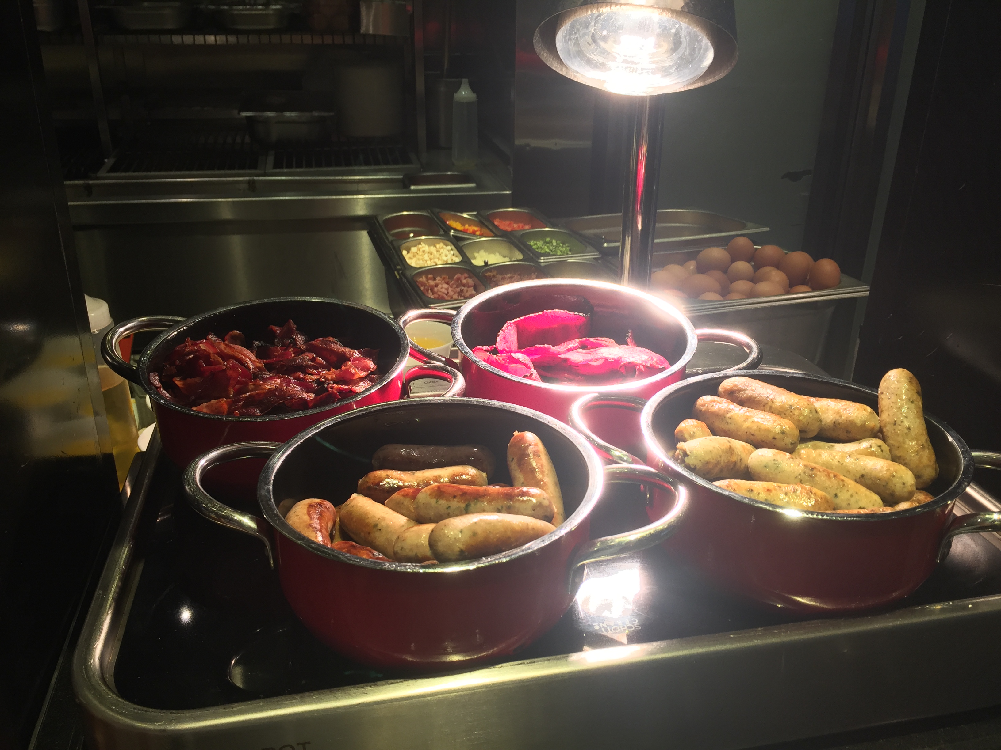 각종 소시지와 베이컨이 있고 오믈렛 주문받는 곳도 있어요.