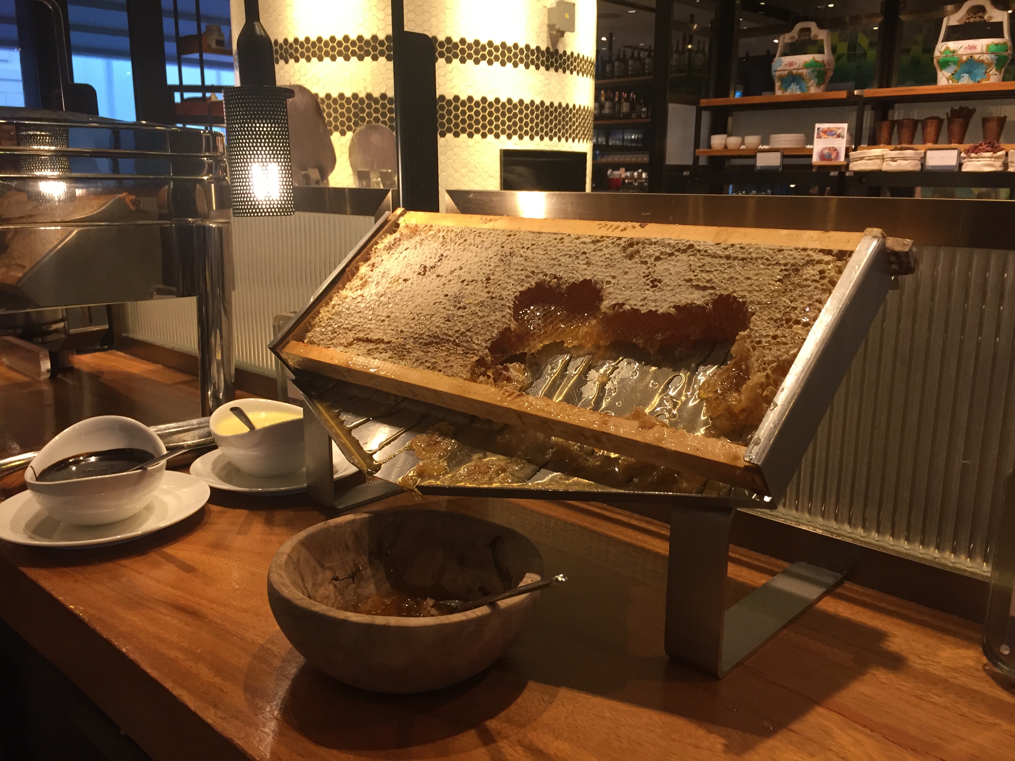 이것도 인상적이었는데요. 꿀판을 통째로 갖다놔서 천연벌꿀을 맛볼 수 있었답니다.