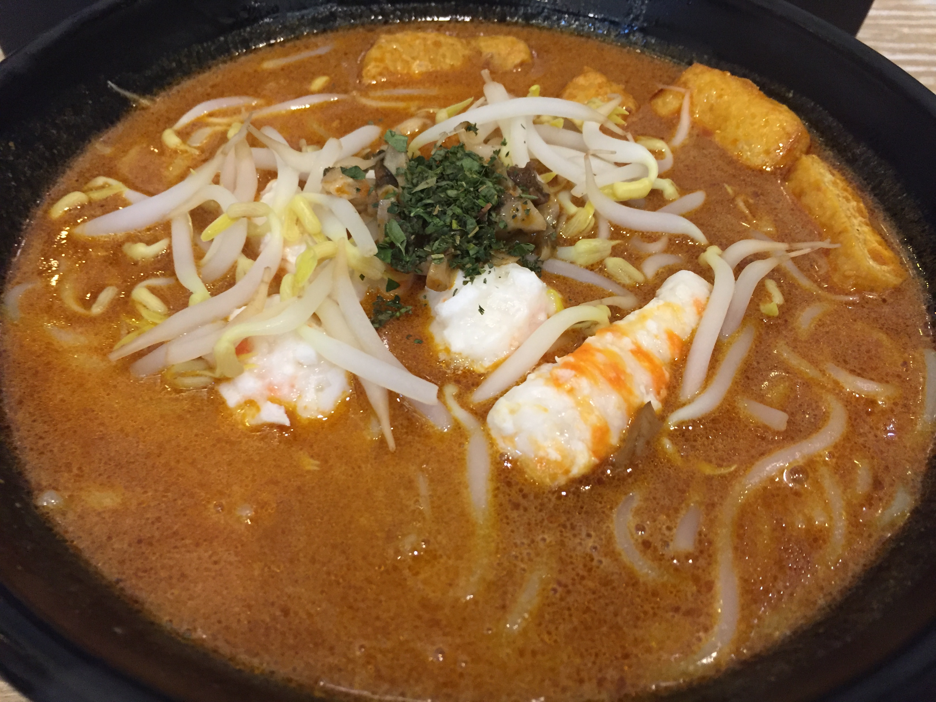 여러 형태가 존재하는데 제가 이날 먹은건 코코넛밀크를 넣은 걸쭉한 국물이었어요. 이국적인 향이지만 저에게는 딱 좋았고, 익숙한 국수, 숙주, 새우, 튀긴두부 등이 함께 나와 맛있게 잘 먹었어요. 덥지만 국물을 쫙 먹으니 속이 든든하더라고요.