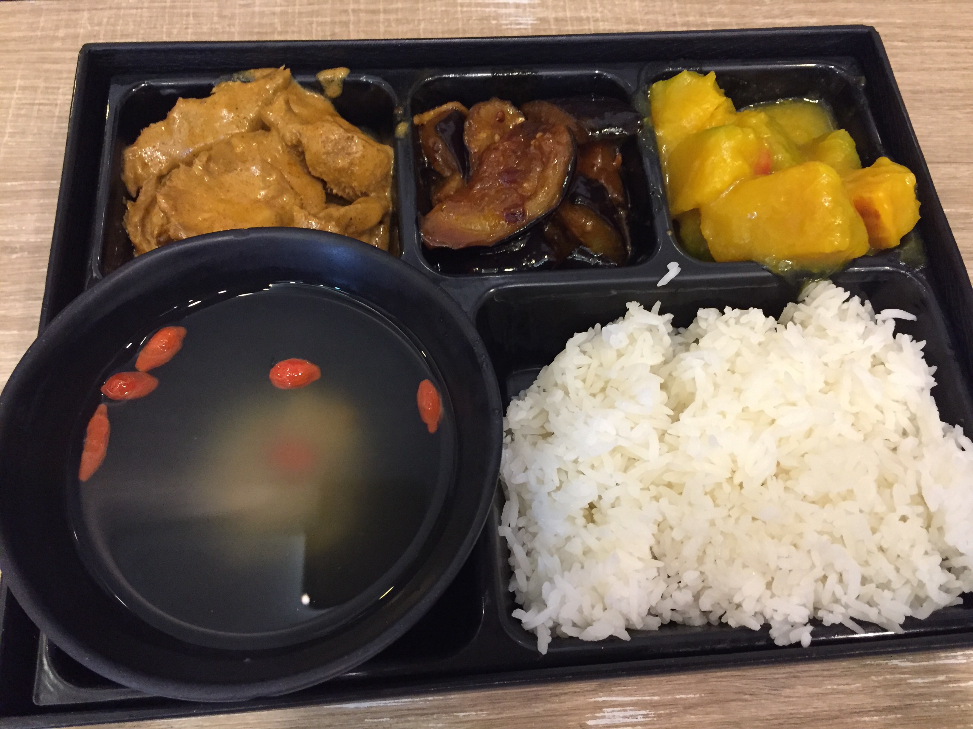 조개탕같은 국을 더 줘서 나온 도시락입니다. 우리는 국을 오른쪽에 두고 먹는데 여기는 왼쪽에 두고 먹나봐요. 카레버섯요리는 현지음식같은 개성있는 음식이었고 가지는 튀긴걸 양념에 버무린건데 매우 맛있었어요. 단호박은 달고 짭짤한 반찬이었는데 밥이랑 먹으려니 좀 달더라고요.