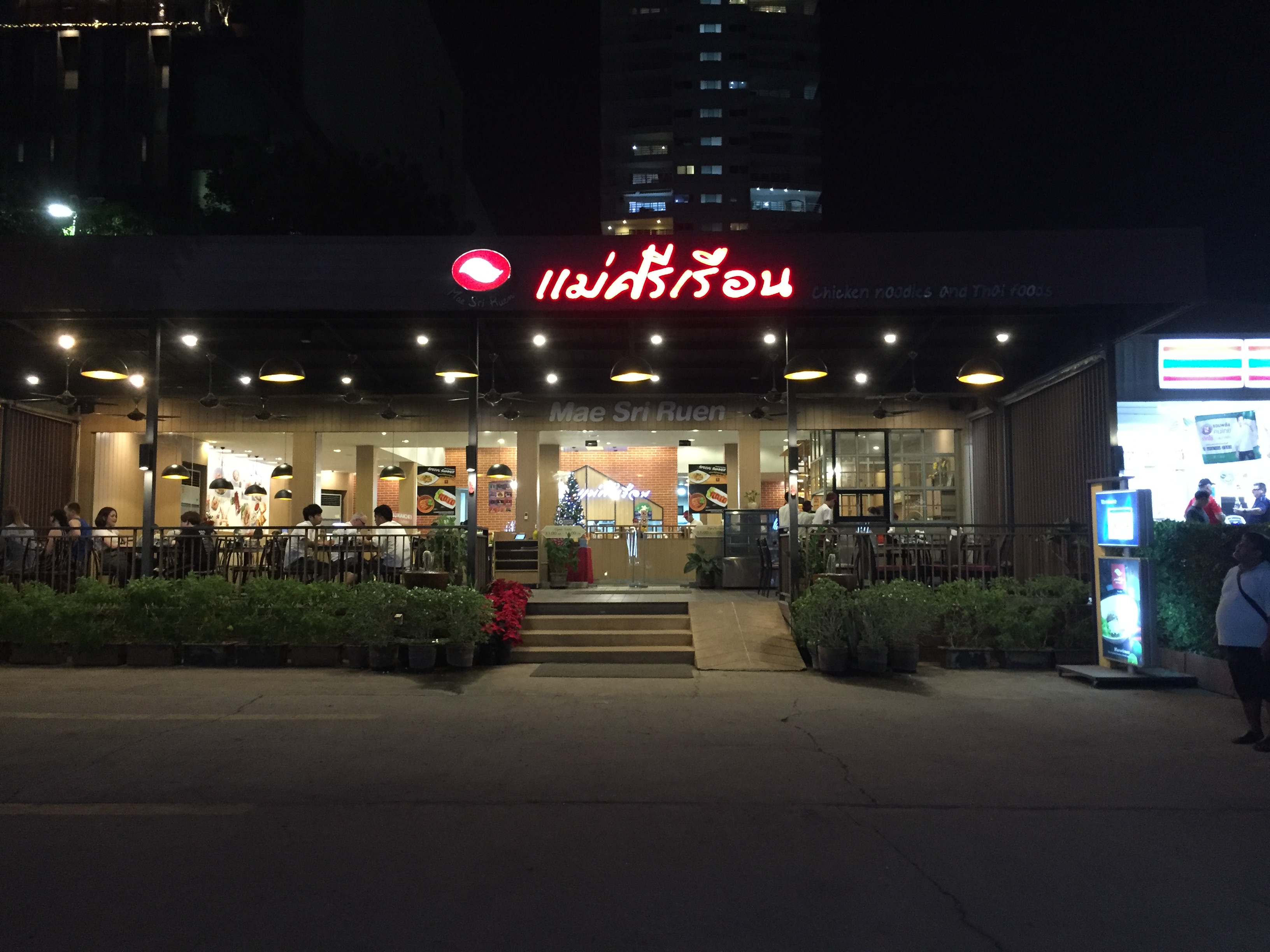 방콕에서 3시간 가량 차로 움직여 밤10시 가까이 되어서 파타야에 도착했어요. 우선 근처에 있는 큰 쇼핑몰에 주차를 하고 해변가 쪽으로 걸어나오니 영업중인 레스토랑이 보여서 들어갔습니다. 매씨르언? 마이스리루엔? 뭐라고 읽는지는 모르겠지만 영문표기는 MaeSriRuen이에요.