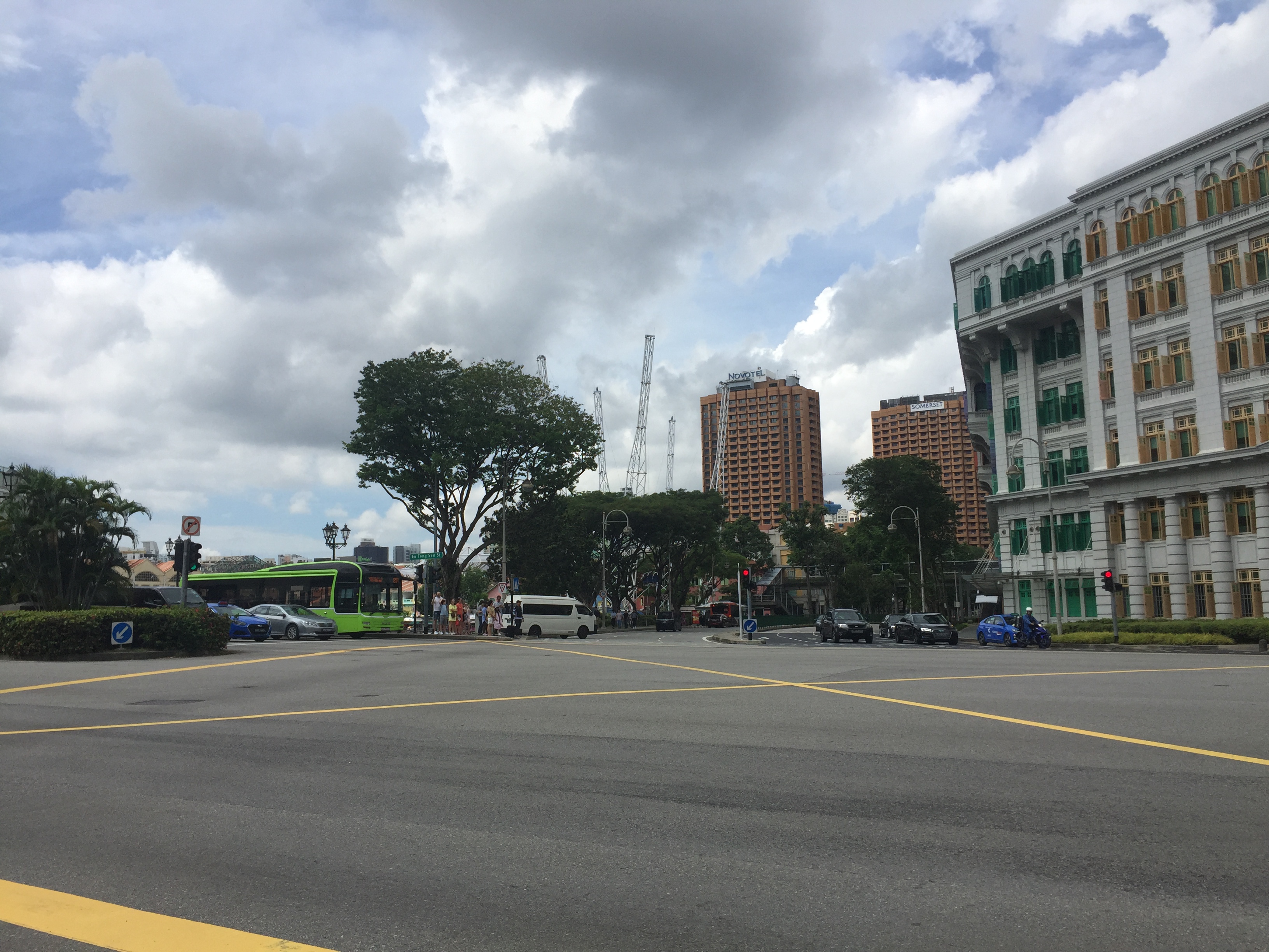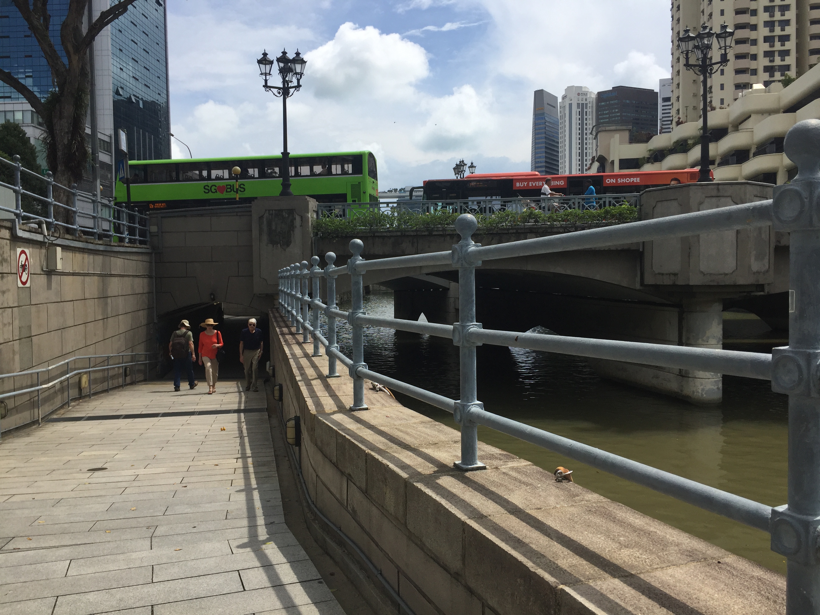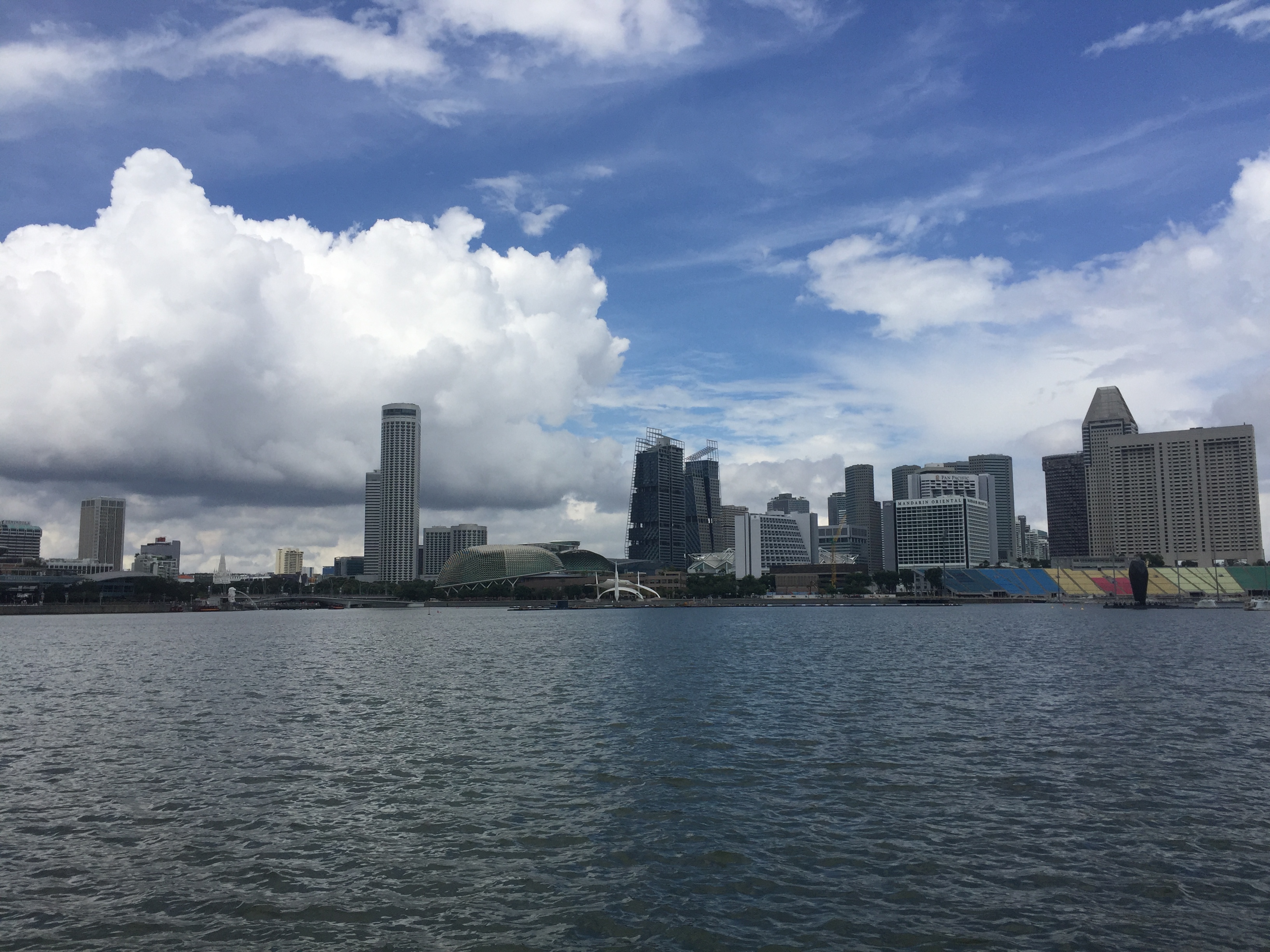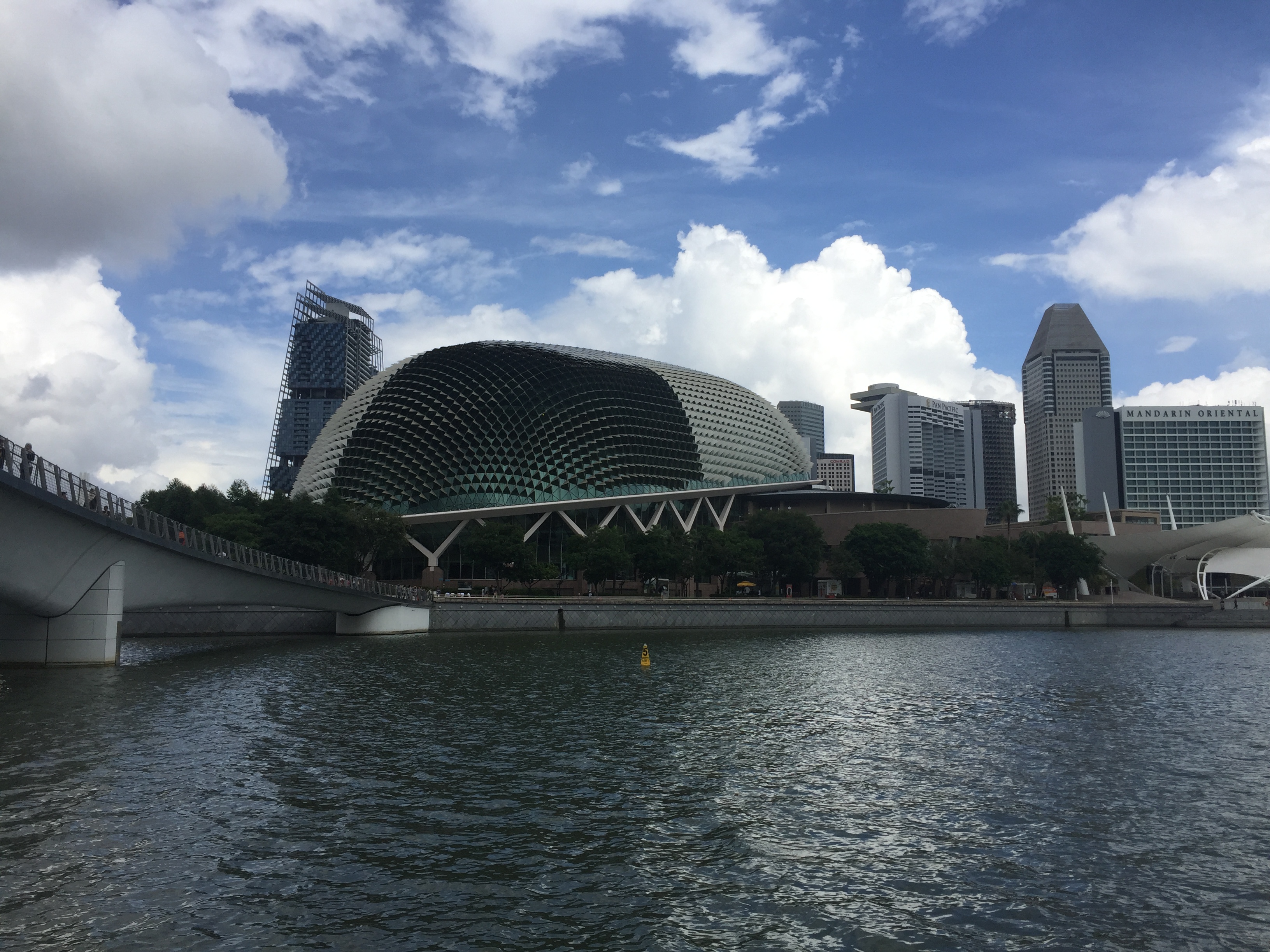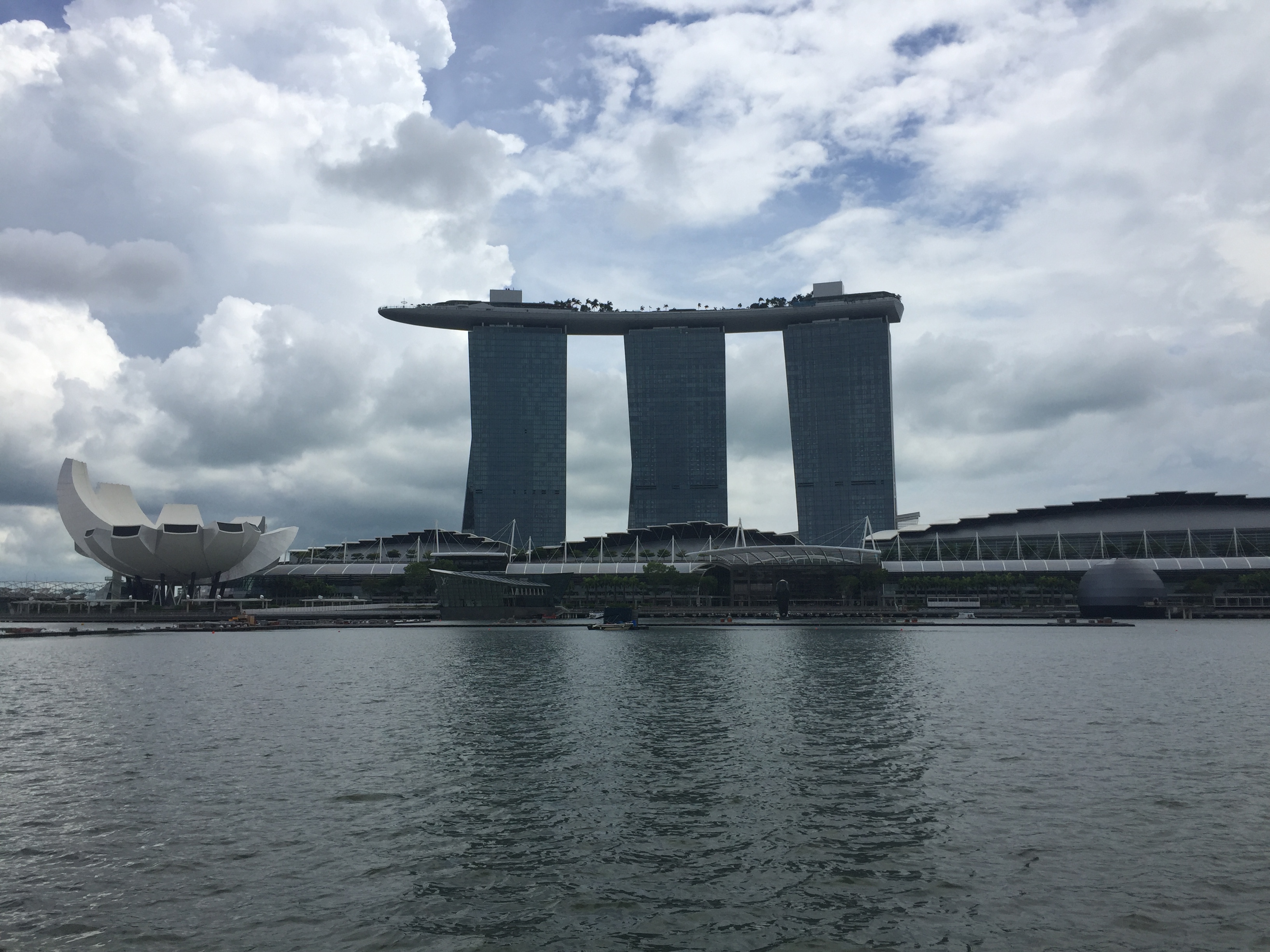 마리나베이샌즈 호텔이 가까이 보이기 시작합니다. 이날 구름이 잔뜩 껴서 흐려요. 저 앞까지 가서 내릴사람은 내린 뒤 다시 출발해요.