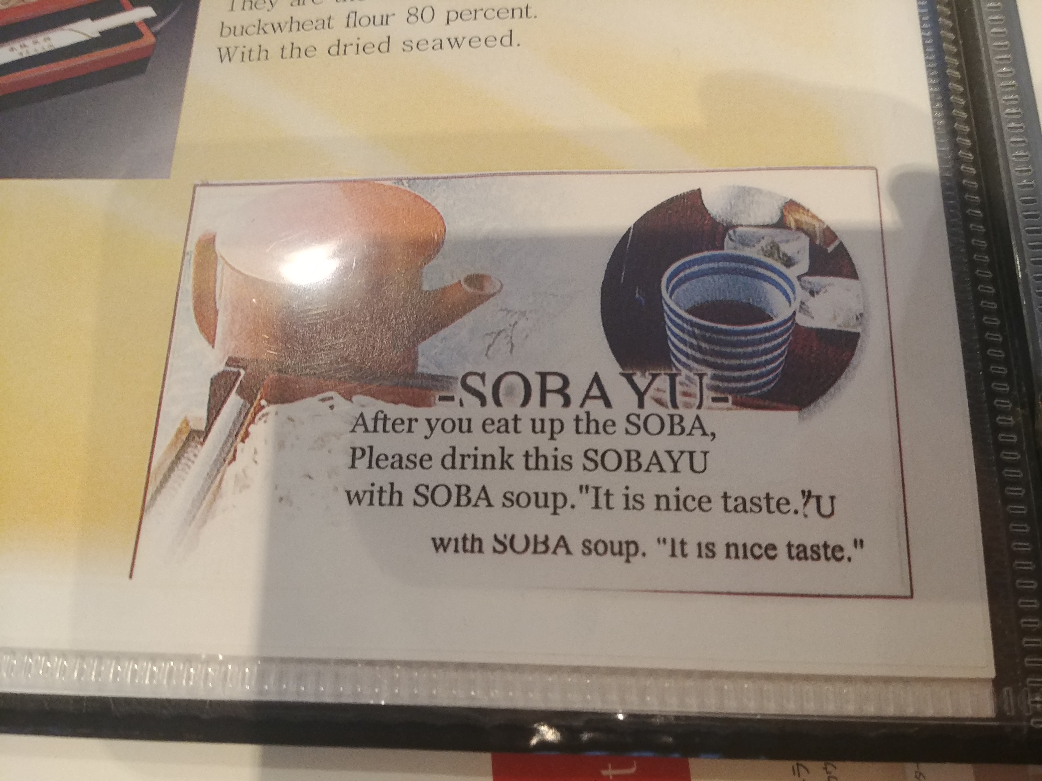 양념장은 소바유라고 하는데 국수를 다 먹고 난 뒤 맛있는 소바유를 마시라고 써 있네요.