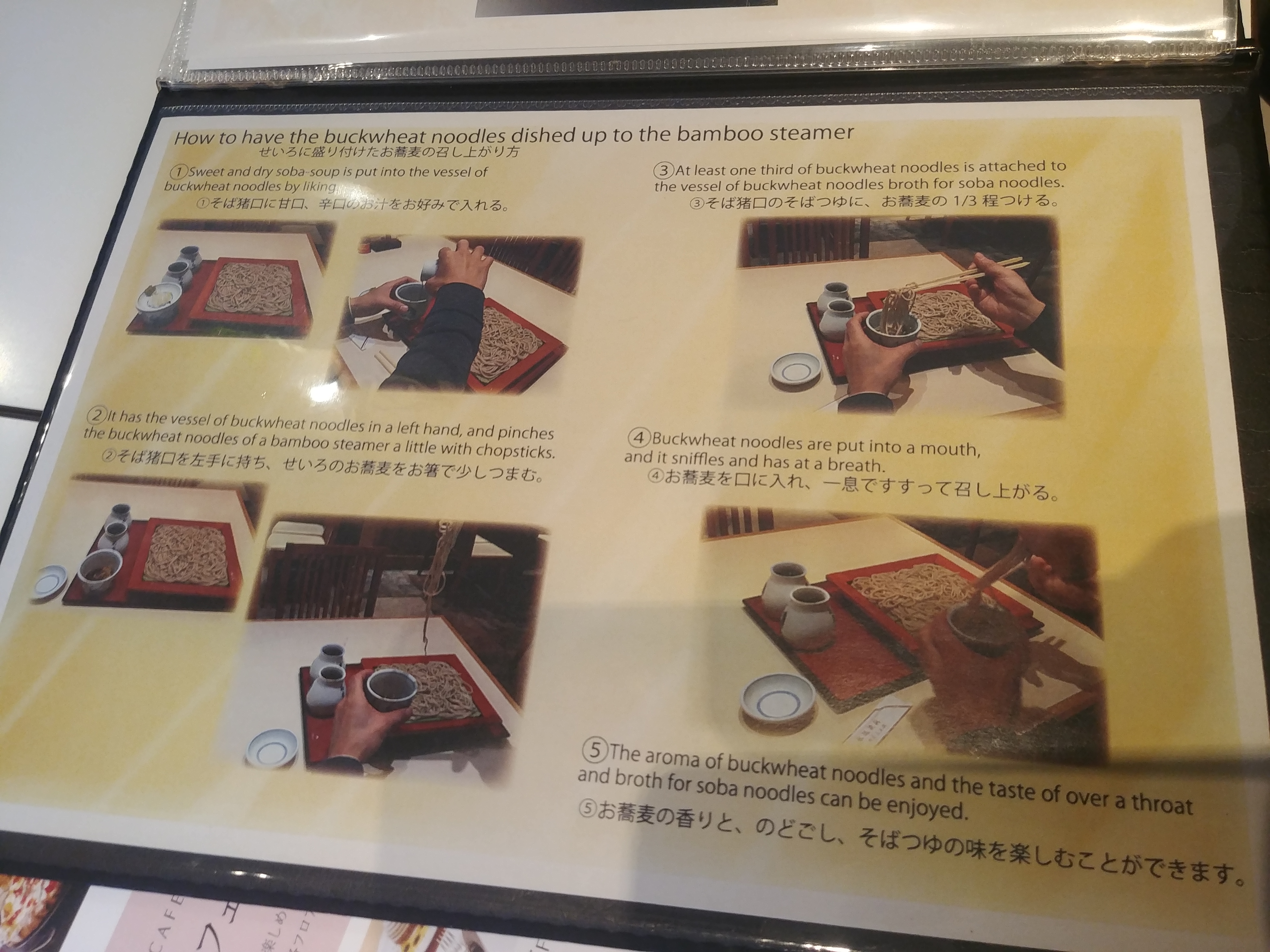 소바를 맛있게 먹는 방법이 자세하게 써있어서 정독해봤어요. 두 가지 양념장을 잘 섞어서 적셔 먹으면 된다는 거죠.