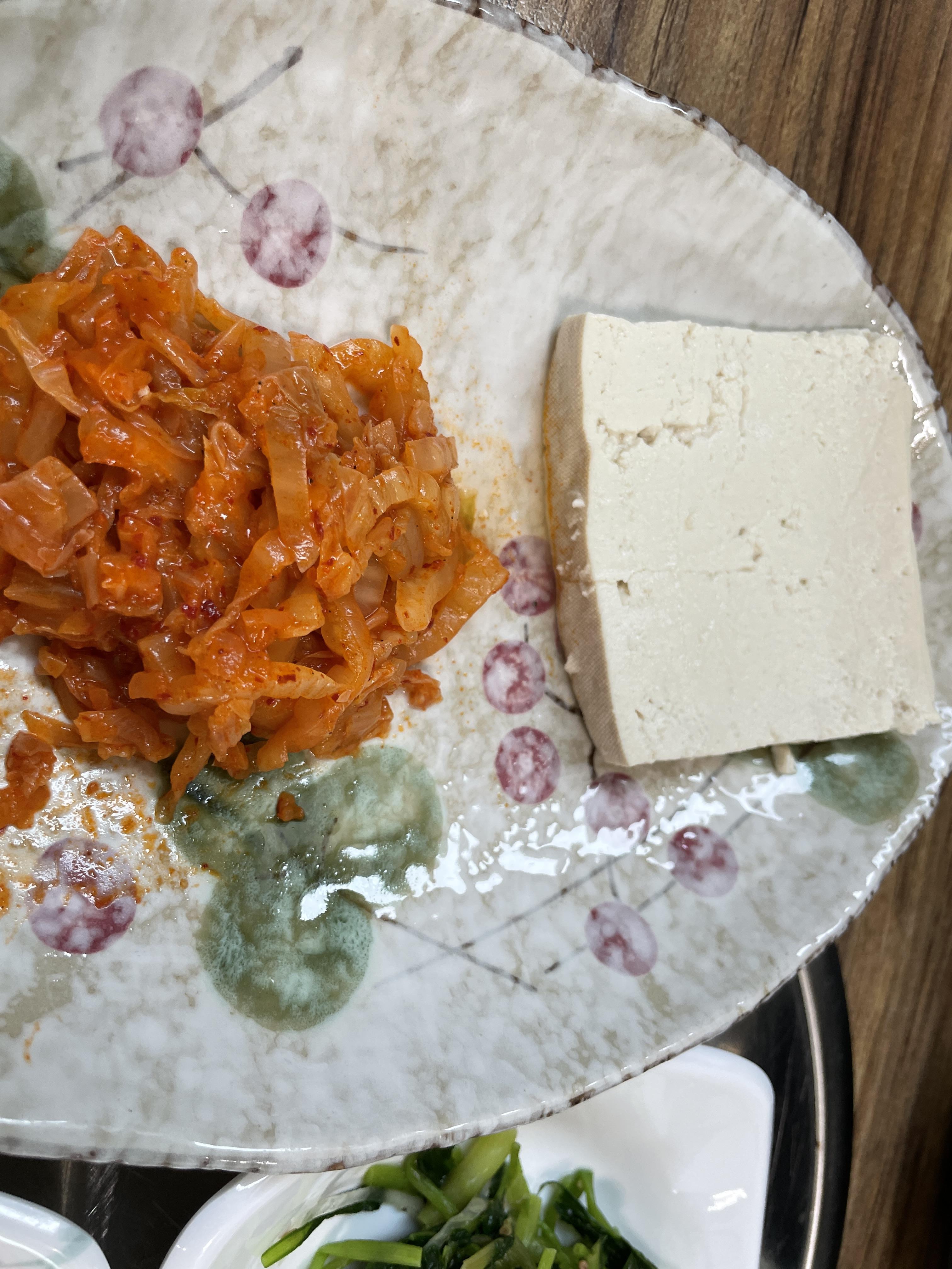 에피타이저로 두부김치가 나옵니다. 고소한 두부에 볶은김치는 누구나 좋아할 만한 맛입니다.