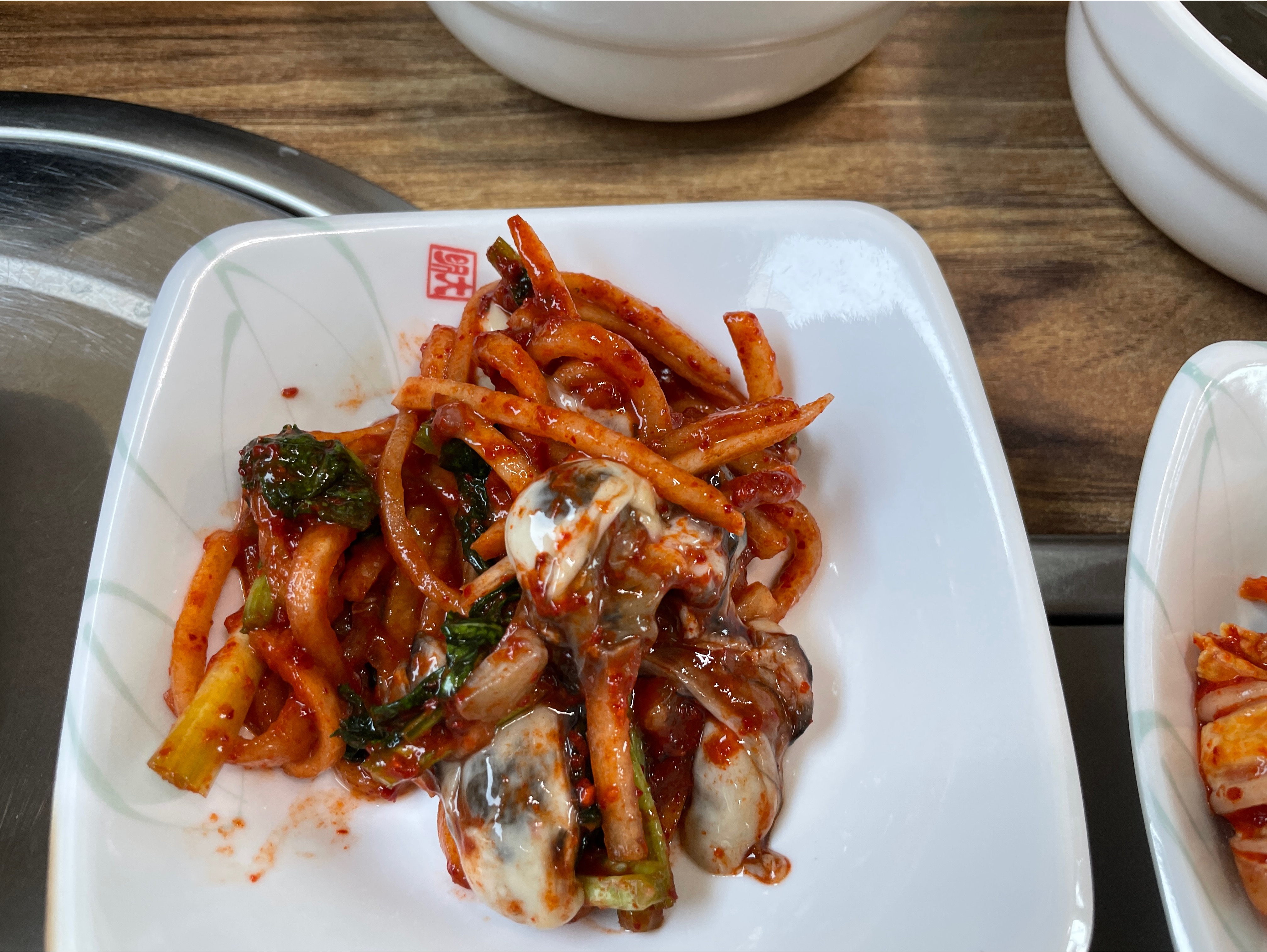 굴무침도 나왔는데 싱싱한 굴에 양념까지 맛있게 무쳐있어서 좋았어요.