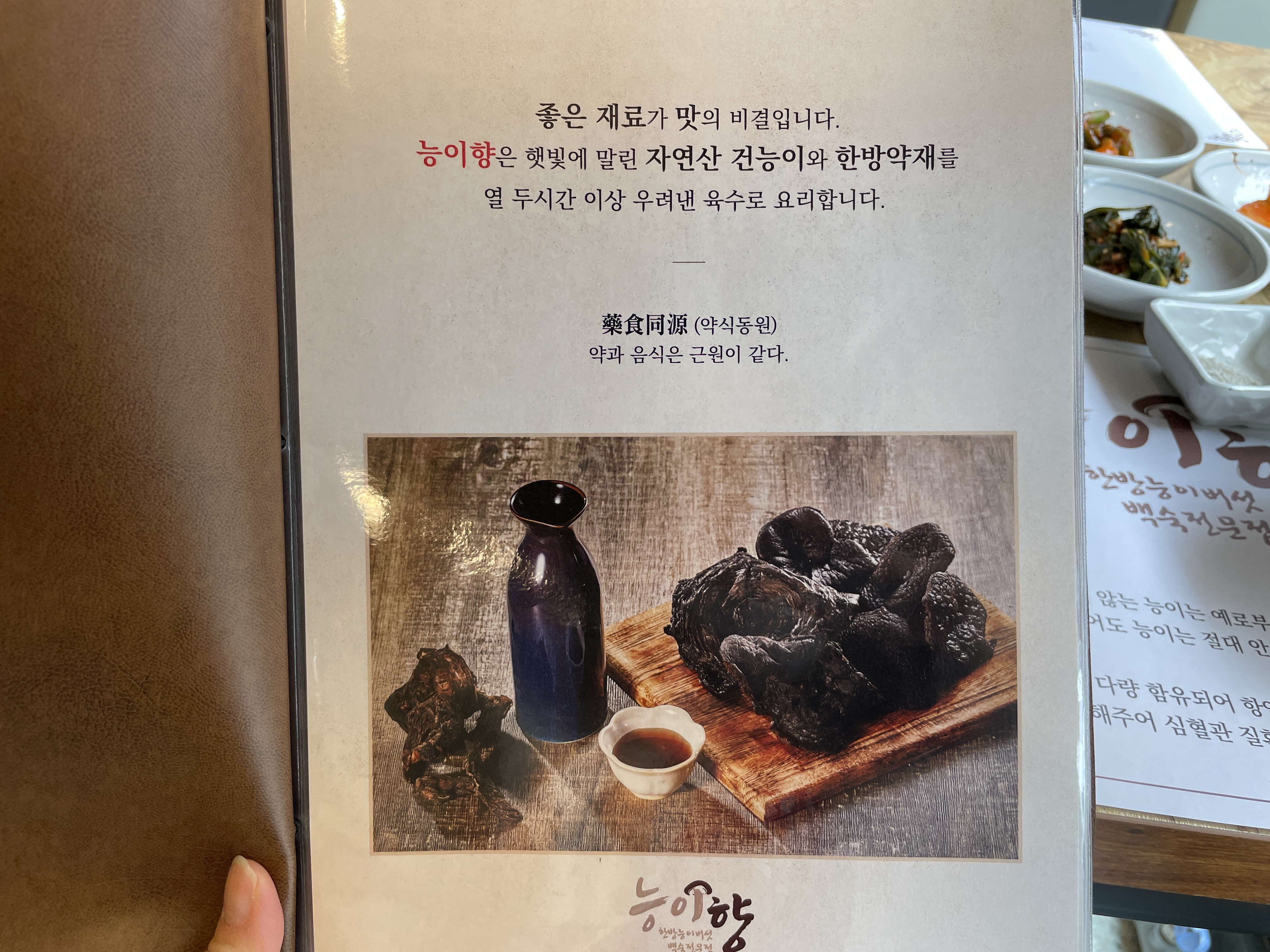 능이향은 건능이와 한방약재를 우려 음식에 사용한다네요. 약식동원이라는 말 참 좋습니다.