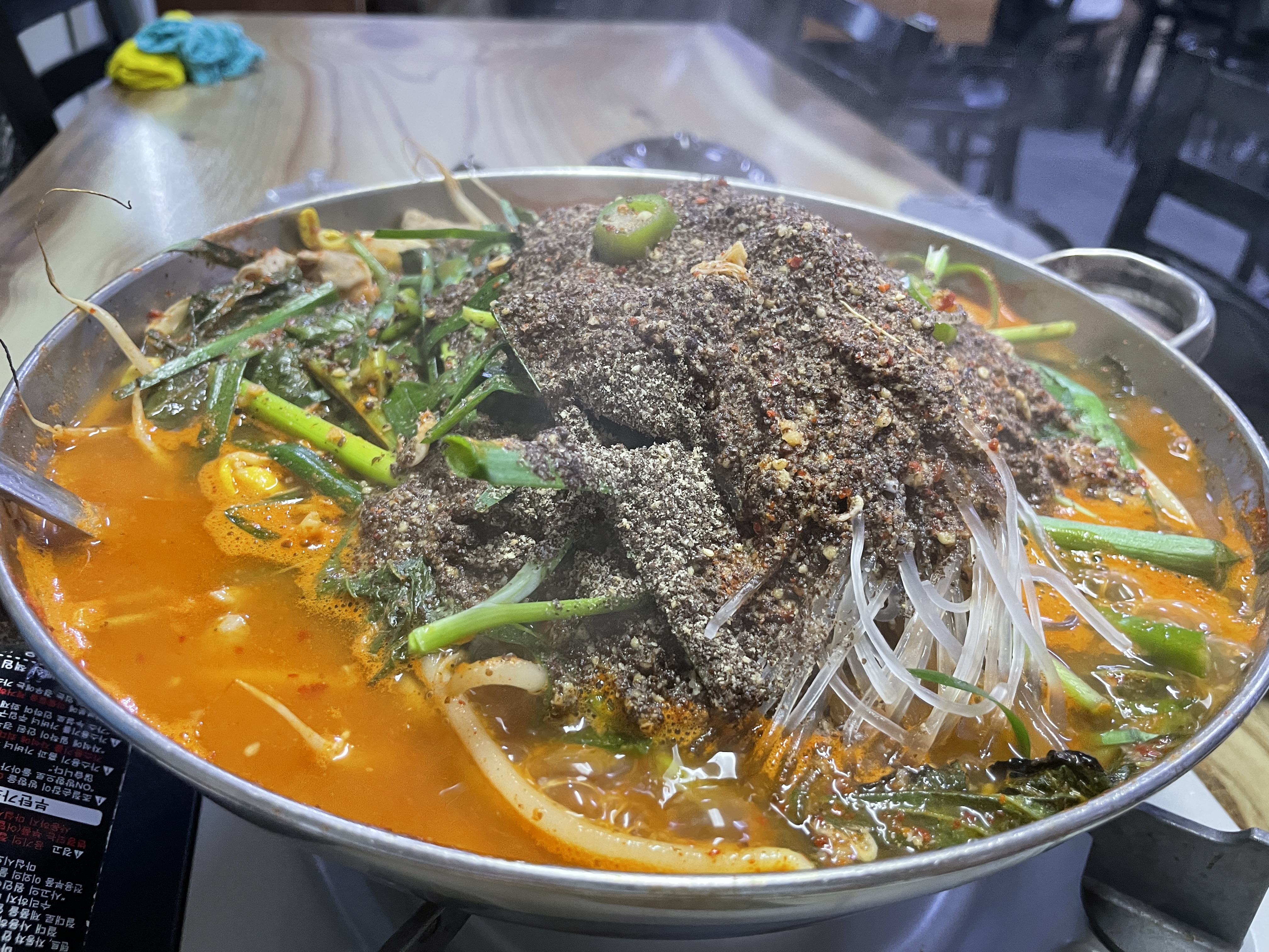 곱창전골이 이어 나옵니다. 돼지곱창, 얼큰한 국물, 당면, 부추, 콩나물 등 푸짐하게 나오는데 잡내 하나도 없었어요.