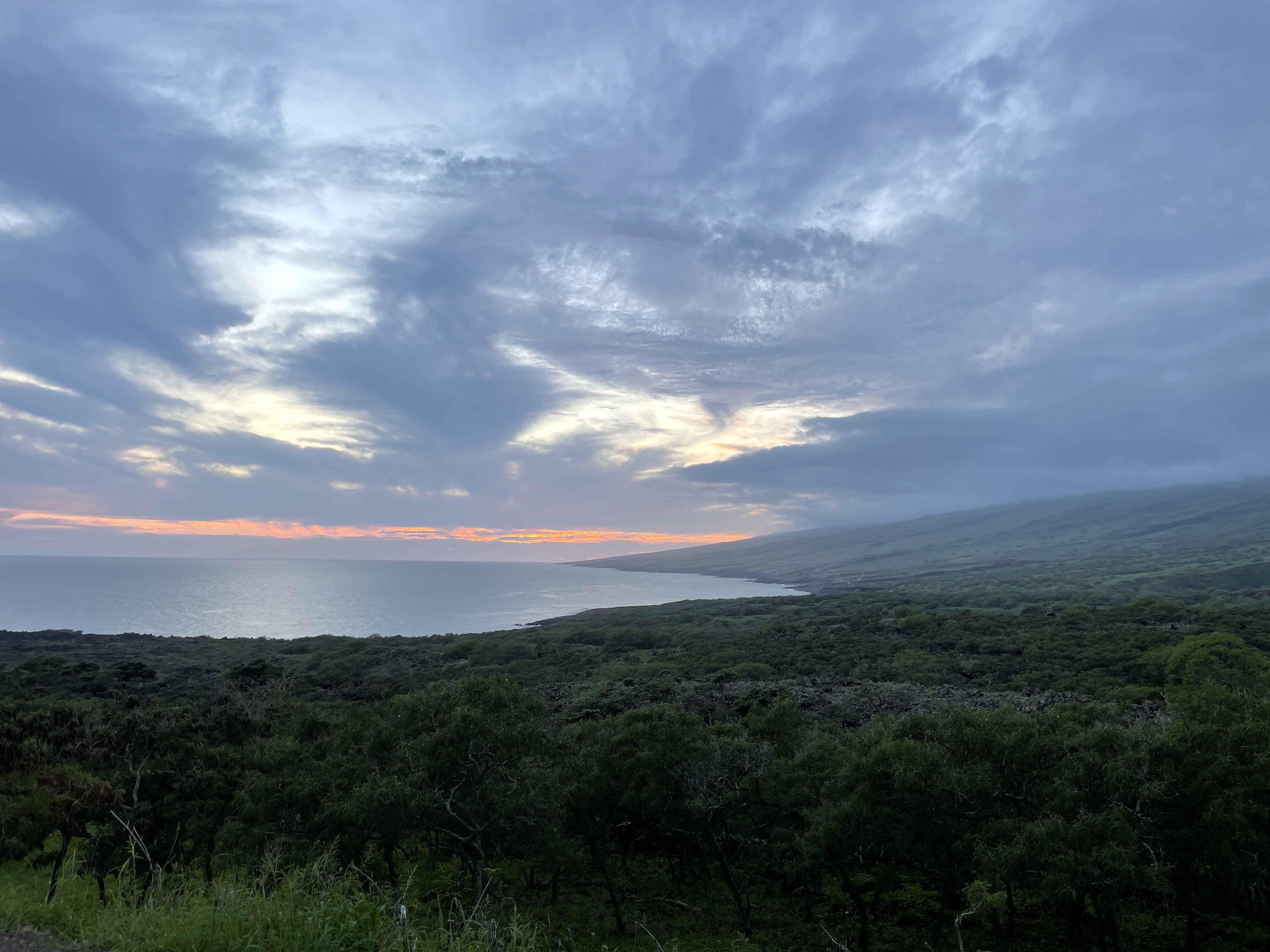 마우이 섬의 완전 남쪽인 Manawainui Gulch 근처에 가니 드디어 해가 지기 시작했어요. 이 근방은 집도 거의 없고, 차도 거의 없었고, 길도 비포장길이 꽤 길게 있었고, 바다도 뭔가 거칠고 차가워 보였어요.