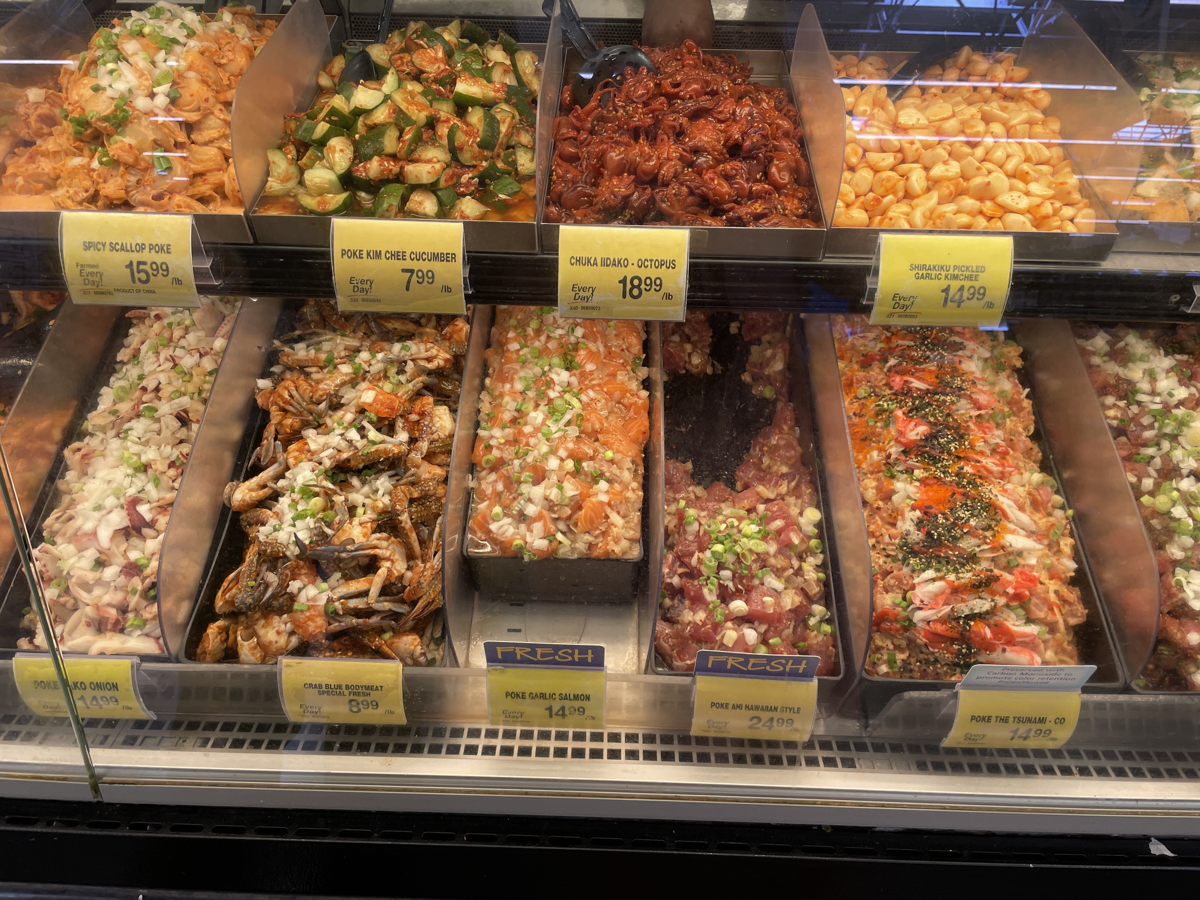 먹거리를 사기 위해 공항근처 마트에 들렀는데 포케코너에 가니 게무침, 조개무침 등 다양한 해산물 요리가 있더라고요.