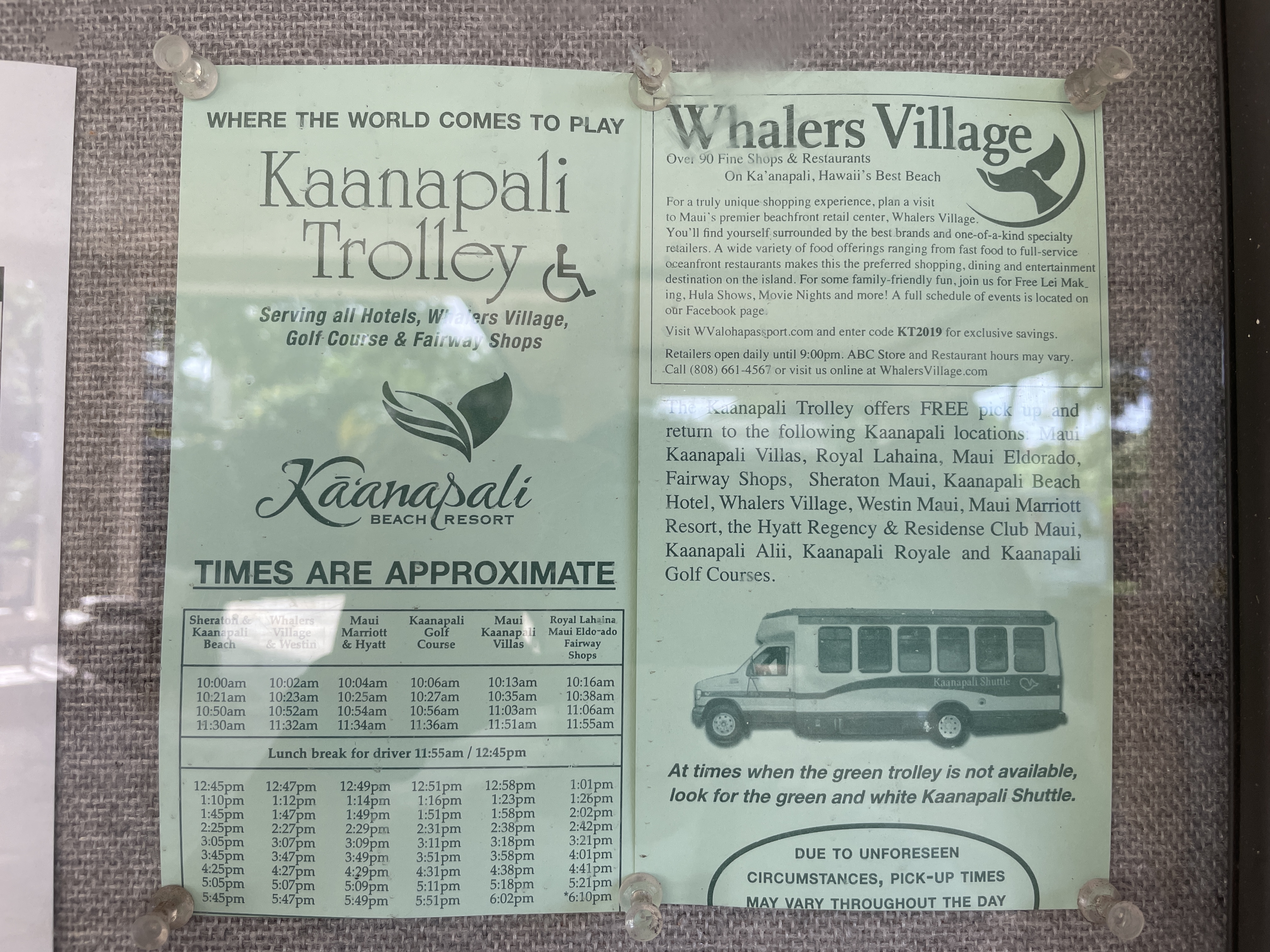 카아나팔리 비치 끝과 끝인 하얏트에서 쉐라톤까지 운행하는 무료 셔틀버스가 있는데, 걸어서 돌아오려니 힘들어서 정류장을 찾아봅니다.