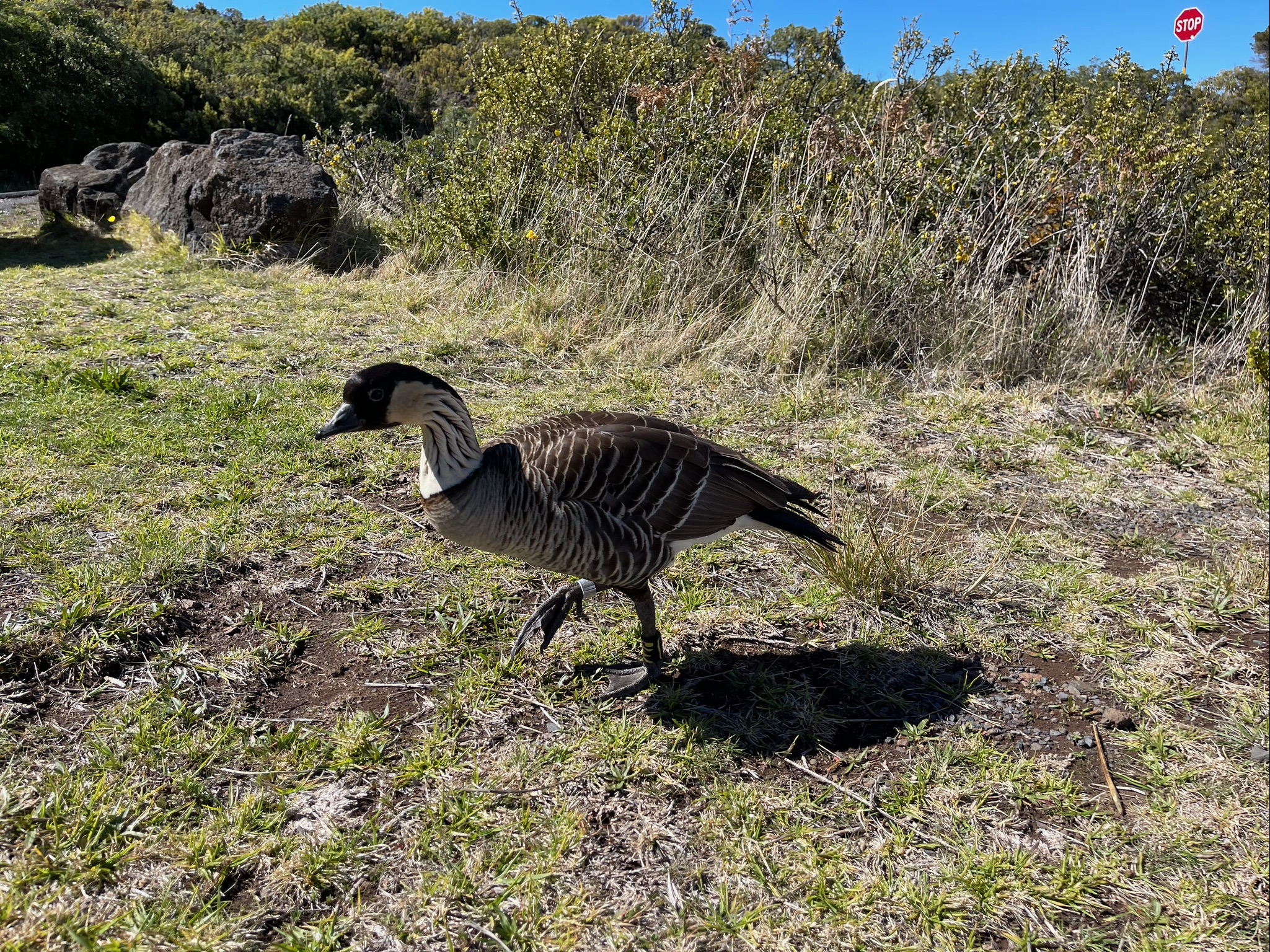 어느덧 점심때가 되었어요. Leleiwi Overlook으로 가서 주차하고 싸온 빵으로 샌드위치를 만들어 먹었습니다. 하와이 기러기nene가 먹을거 달라고 다가오네요. 먹을거 주면 안된다고 씌여 있어서 저만 먹었습니다.