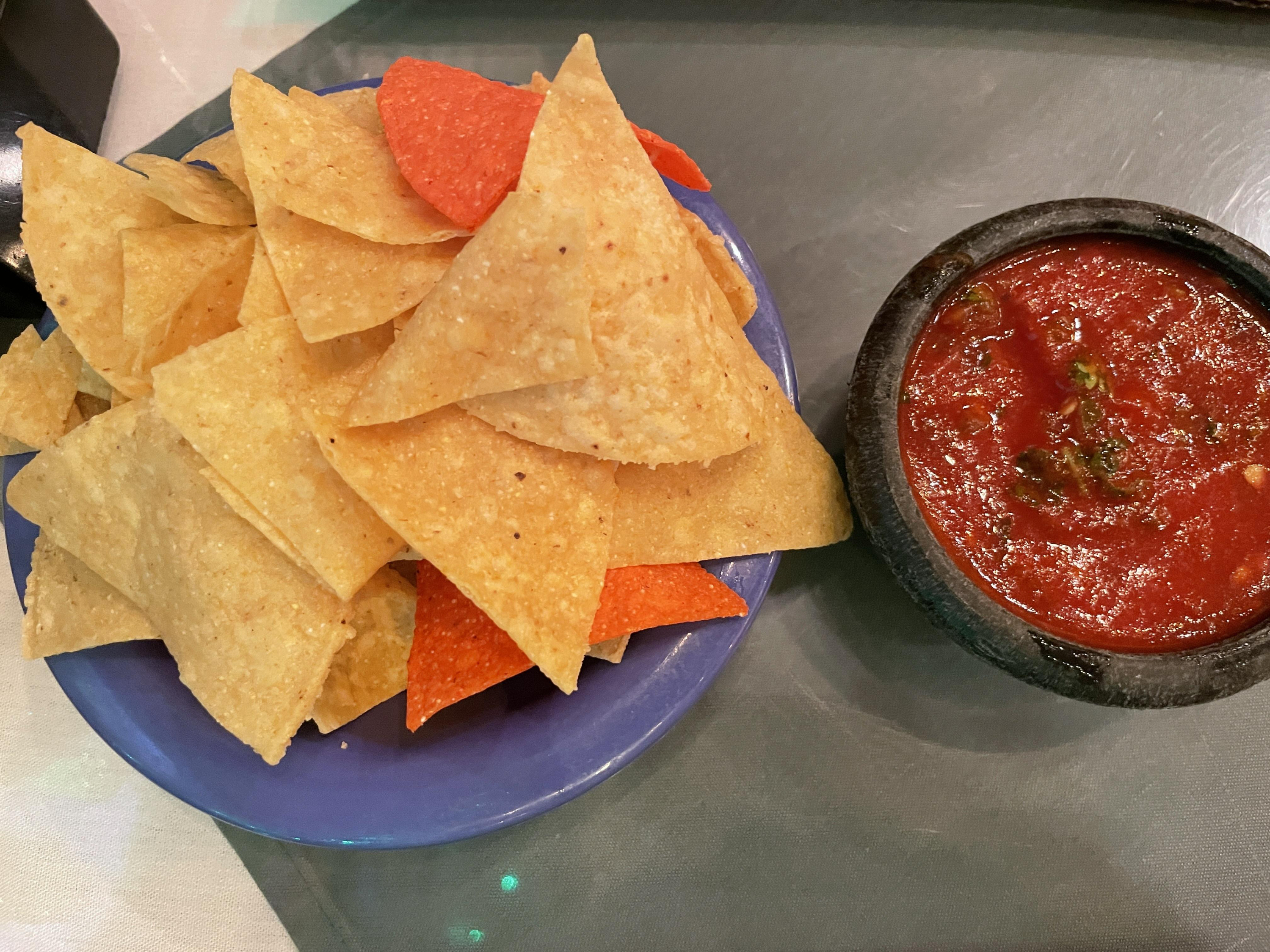 다른 곳은 잘 모르겠지만 적어도 텍사스에 제가 가본 멕시칸 음식점에서는 앉으면 무조건 나초칩과 살사소스를 서비스로 내어줍니다. 그래서 따로 시키지 않고 이렇게만 맛봐도 충분히 그집 음식수준을 알 수 있었어요.
