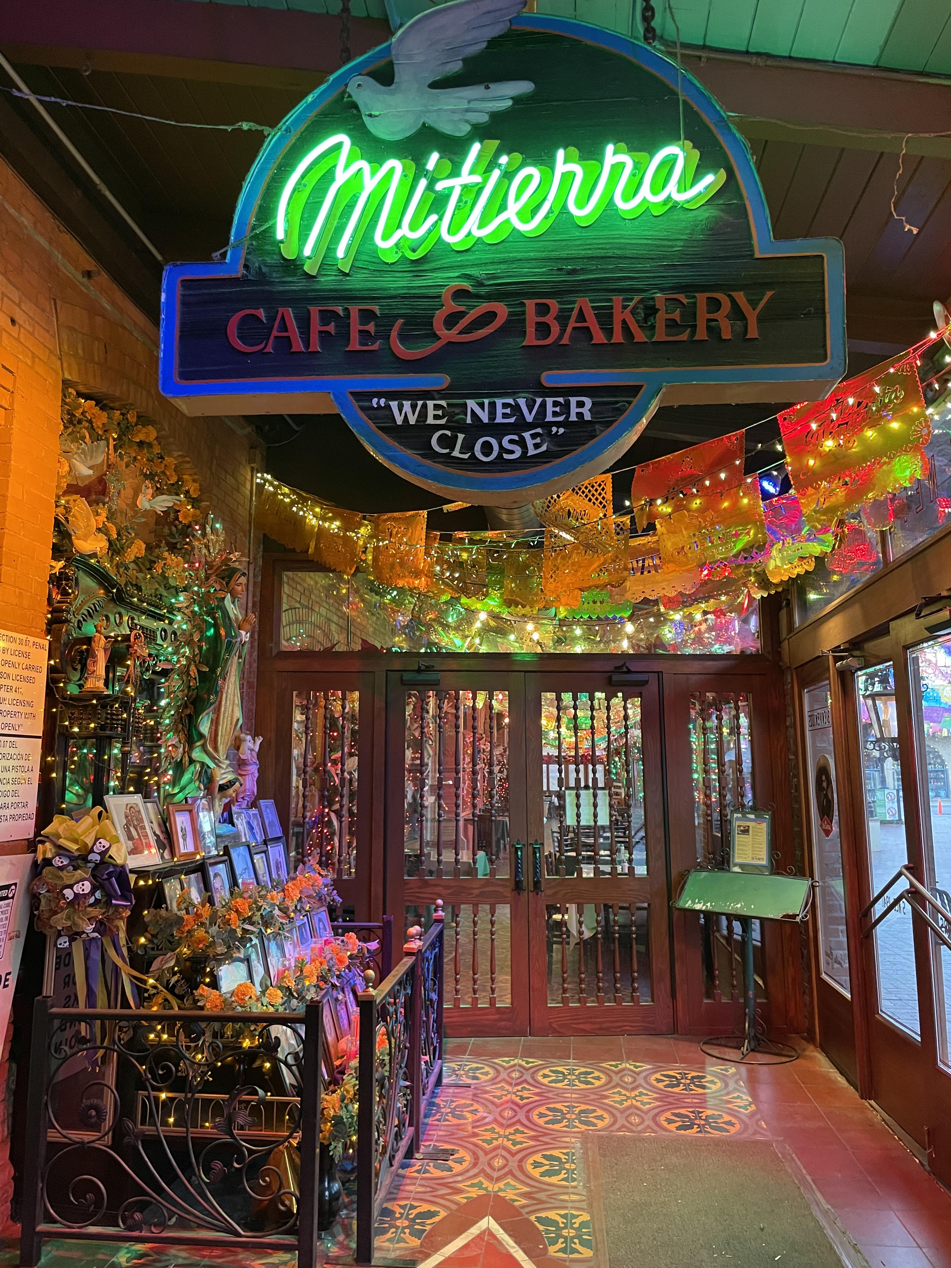 매일 영업하고, 오전8시에서 오후10시, 주말엔 11시까지 영업합니다. 계산대에는 창업자 후손으로 보이는 할머니가 자리를 꼿꼿이 지키고 계셔서 끝까지 인상깊었던 곳이에요. 적당한 가격에 볼거리, 먹을거리 모두 충족하는 기억에 가장 남으면서 또 가고 싶은 레스토랑입니다. 샌안토니오에 갔다면 Mi Tierra Cafe y Panaderia에서 멕시코 음식을 드셔보길 강력추천합니다.