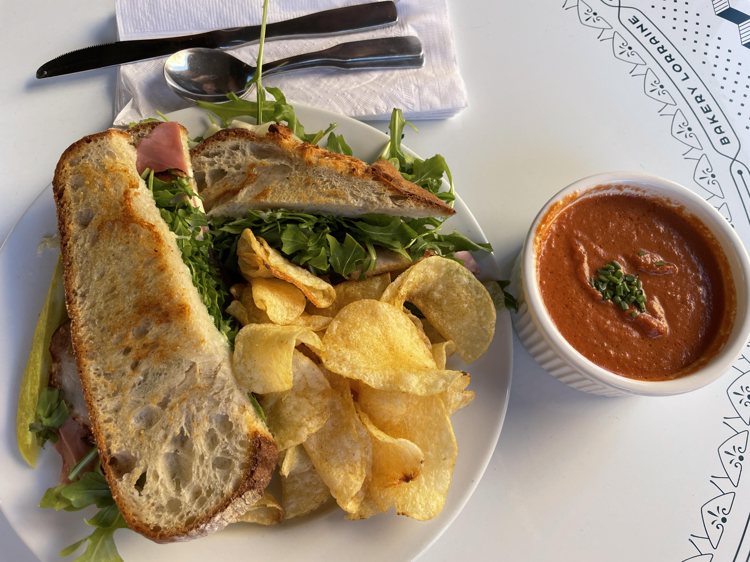 루꼴라가 잔뜩 들어가고 겉은 직접 구운 빵이라 퀄리티가 굉장히 좋더라고요. 잠봉이 치즈라고 했는데 다시 보니 햄을 뜻하는 것 같아요. 아무튼 맛있게 먹었어요.