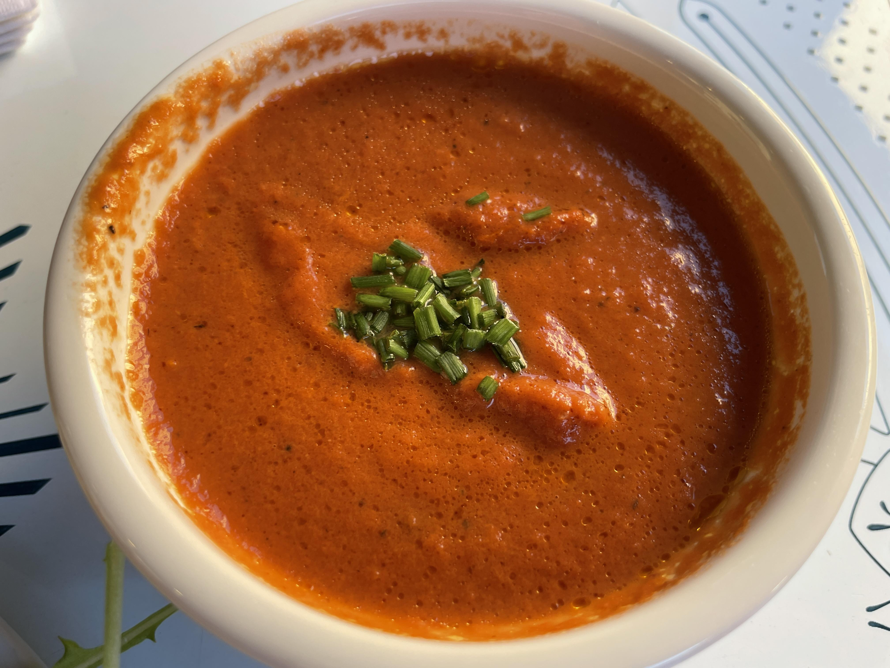 토마토 스프는 걸쭉하니 본연의 맛을 잘 살렸어요. 양이 좀 적은 것 같고, 빵이나 크래커가 같이 안나와서 아쉽더라고요.